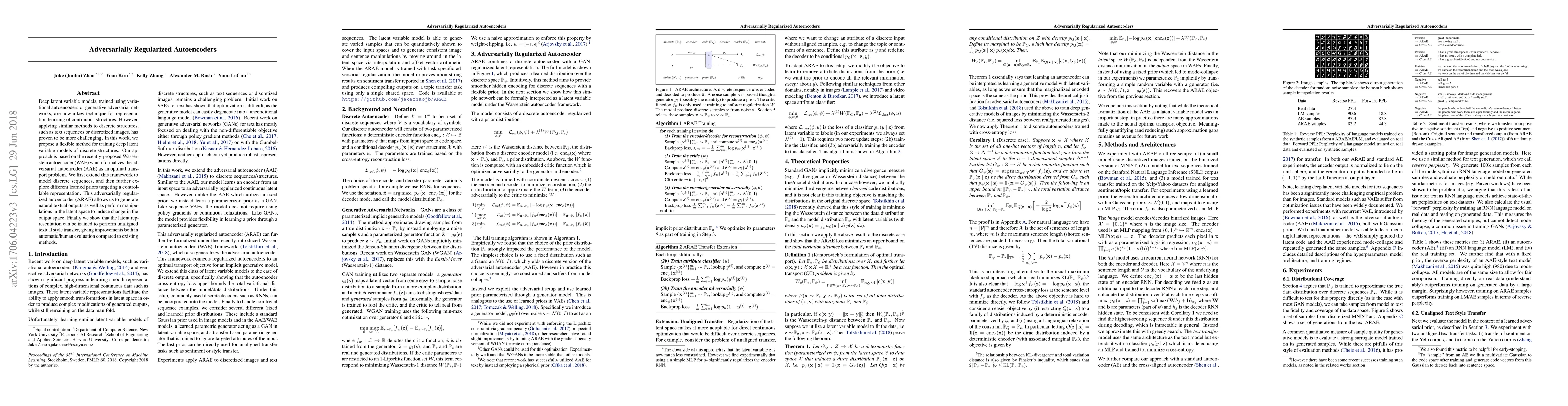 Researchers develop an adversarially regularized autoencoder (ARAE) to model discrete structures like text sequences, enabling natural textual outputs and manipulations in the latent space. The ARAE achieves improvements in automatic/human evaluation compared to existing methods for unaligned textual style transfer.