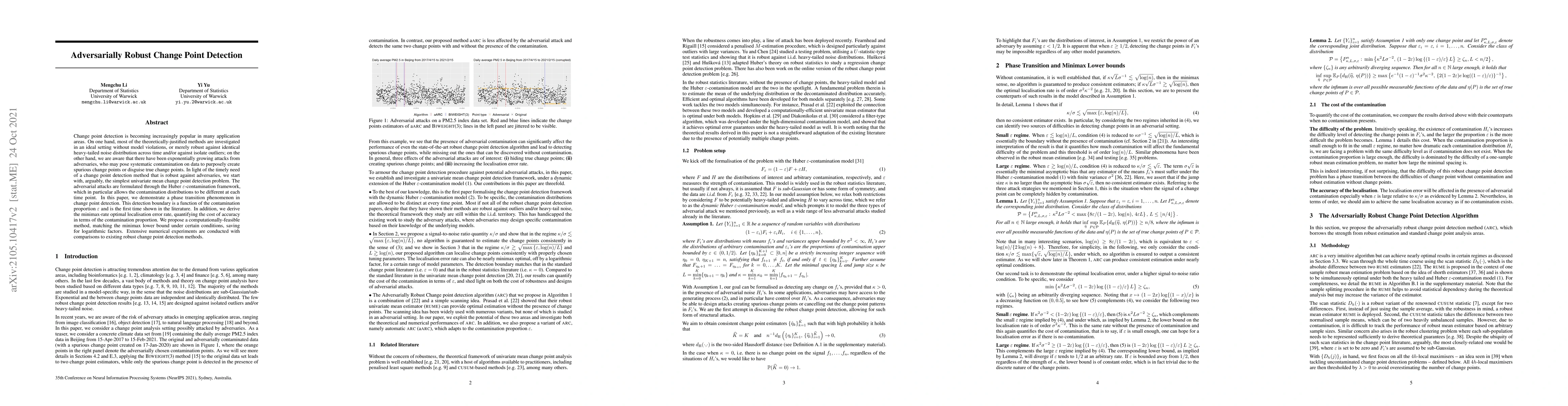 Change point detection is becoming increasingly popular in many application areas. On one hand, most of the theoretically-justified methods are investigated in an ideal setting without model violations, or merely robust against identical heavy-tailed noise distribution across time and/or against isolate outliers; on the other hand, we are aware that there have been exponentially growing attacks from adversaries, who may pose systematic contamination on data to purposely create spurious change points or disguise true change points. In light of the timely need for a change point detection method that is robust against adversaries, we start with, arguably, the simplest univariate mean change point detection problem. The adversarial attacks are formulated through the Huber $\varepsilon$-contamination framework, which in particular allows the contamination distributions to be different at each time point. In this paper, we demonstrate a phase transition phenomenon in change point detection. This detection boundary is a function of the contamination proportion $\varepsilon$ and is the first time shown in the literature. In addition, we derive the minimax-rate optimal localisation error rate, quantifying the cost of accuracy in terms of the contamination proportion. We propose a computationally feasible method, matching the minimax lower bound under certain conditions, saving for logarithmic factors. Extensive numerical experiments are conducted with comparisons to robust change point detection methods in the existing literature.