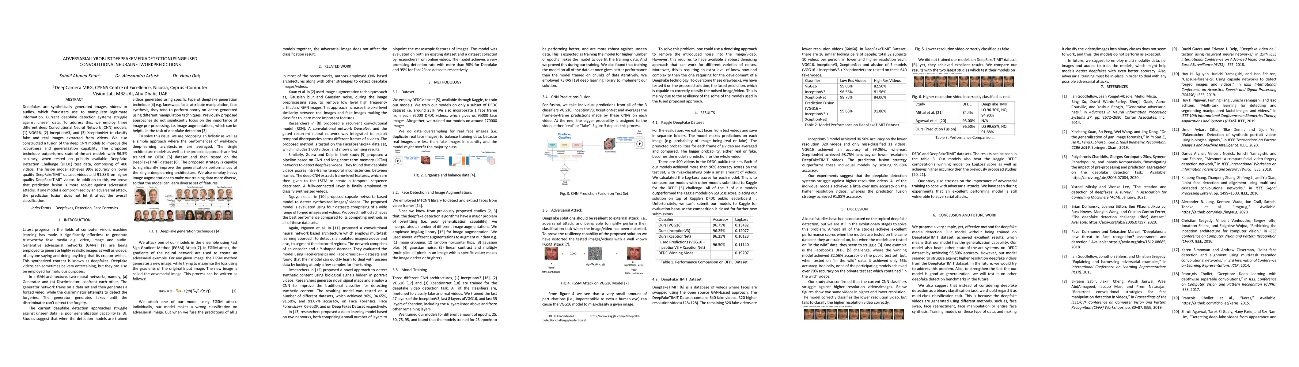 This paper proposes a deepfake detection system using fused predictions from three CNN models—VGG16, InceptionV3, and XceptionNet—to enhance robustness and generalization. The fusion model achieves superior accuracy and demonstrates higher resilience against adversarial attacks compared to individual models.