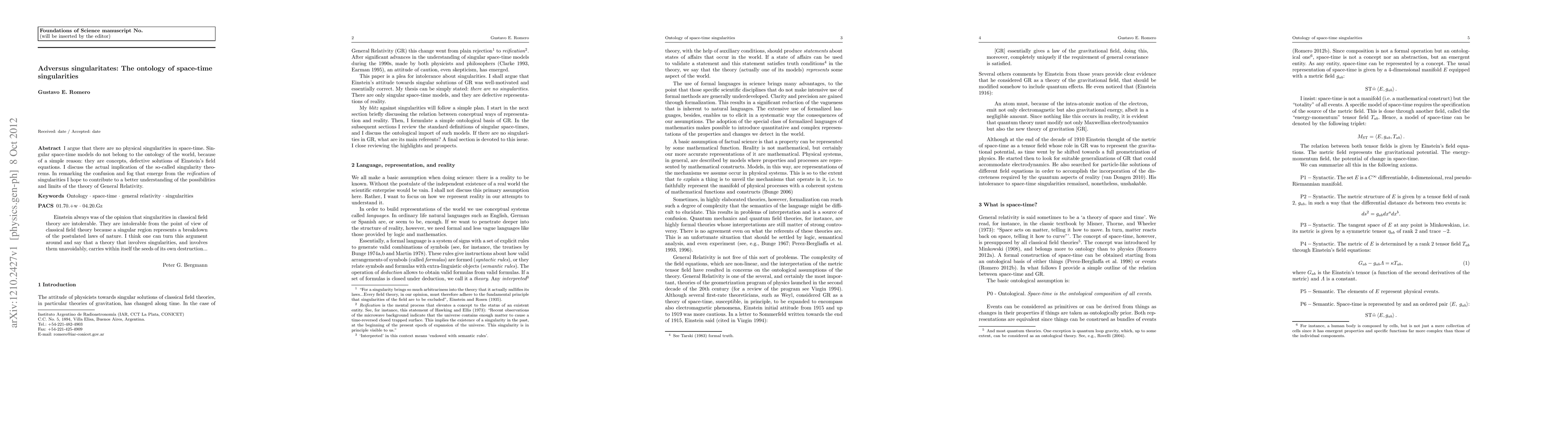 I argue that there are no physical singularities in space-time. Singular space-time models do not belong to the ontology of the world, because of a simple reason: they are concepts, defective solutions of Einstein's field equations. I discuss the actual implication of the so-called singularity theorems. In remarking the confusion and fog that emerge from the reification of singularities I hope to contribute to a better understanding of the possibilities and limits of the theory of General Relativity.