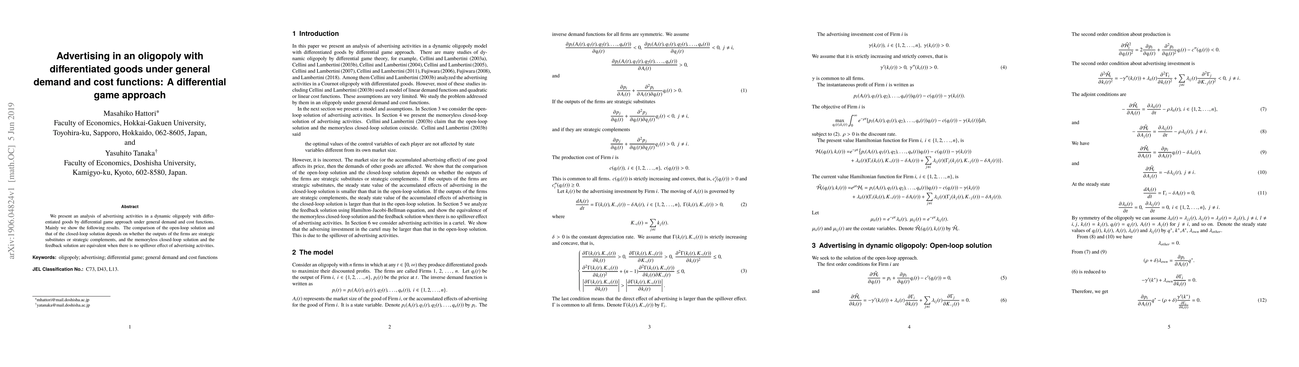 The findings show that the memoryless closed-loop solution and feedback solution are equivalent when there is no spillover effect of advertising activities.