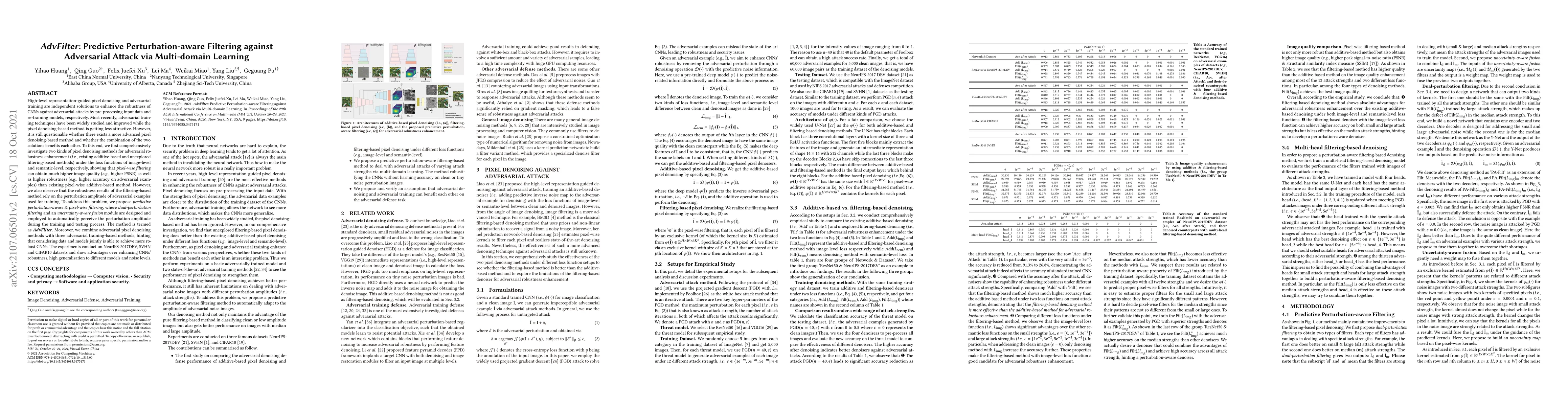 AdvFilter combines predictive perturbation-aware pixel-wise filtering with adversarial training to enhance CNN robustness. The proposed method outperforms existing pixel-wise denoising techniques and shows high generalization across different datasets and noise levels.