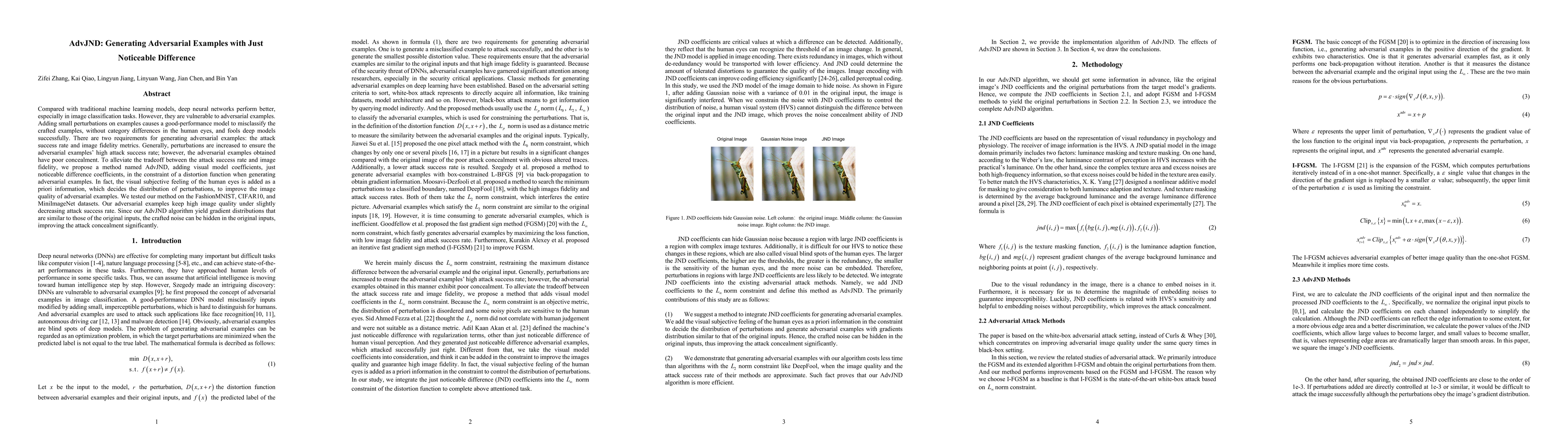 This paper proposes AdvJND, a method for generating adversarial examples that balances attack success rate and image fidelity by incorporating just noticeable difference coefficients. Adversarial examples created using AdvJND maintain high attack effectiveness while significantly improving visual concealment, as tested on FashionMNIST, CIFAR10, and MiniImageNet datasets.