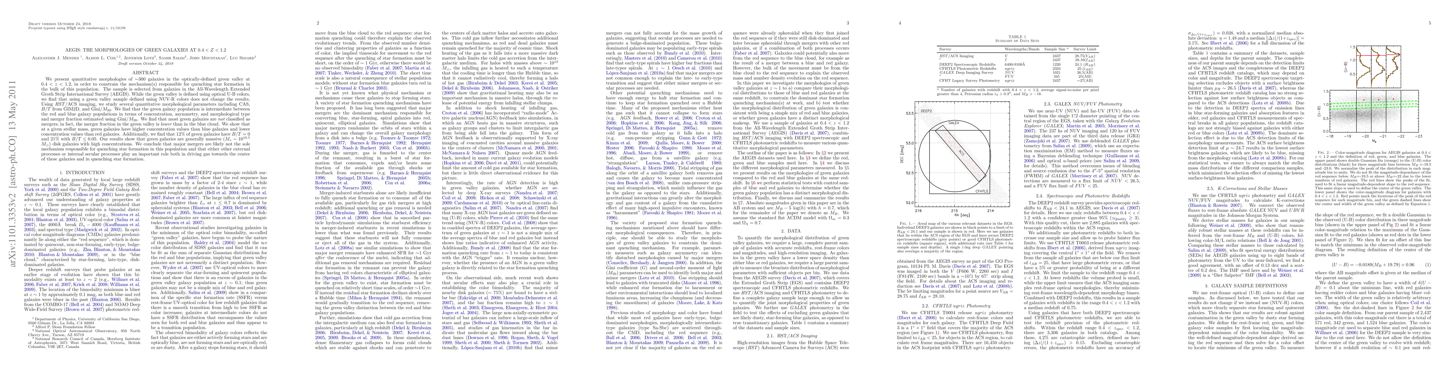 This study analyzes the morphologies of ~300 green valley galaxies at 0.4<z<1.2 from the AEGIS survey, finding they are intermediate between red and blue galaxies in terms of concentration, asymmetry, and merger fraction. The results suggest that major mergers are not the primary mechanism for quenching star formation in these galaxies.