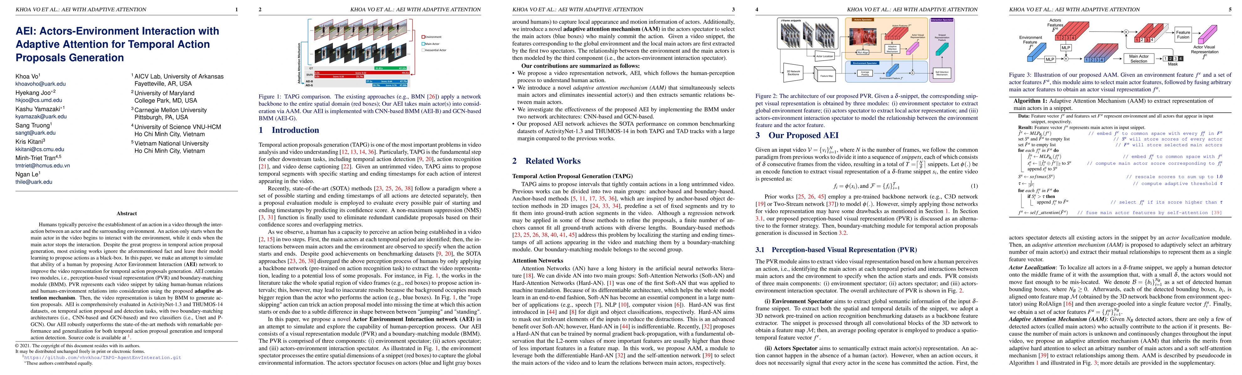 This paper introduces the Actor Environment Interaction (AEI) network to enhance temporal action proposal generation by simulating human perception of action through actor-environment interaction. The AEI network comprises a perception-based visual representation and a boundary-matching module, utilizing adaptive attention to consider human-human and human-environment relations, and outperforms state-of-the-art methods on ActivityNet-1.3 and THUMOS-14 datasets.