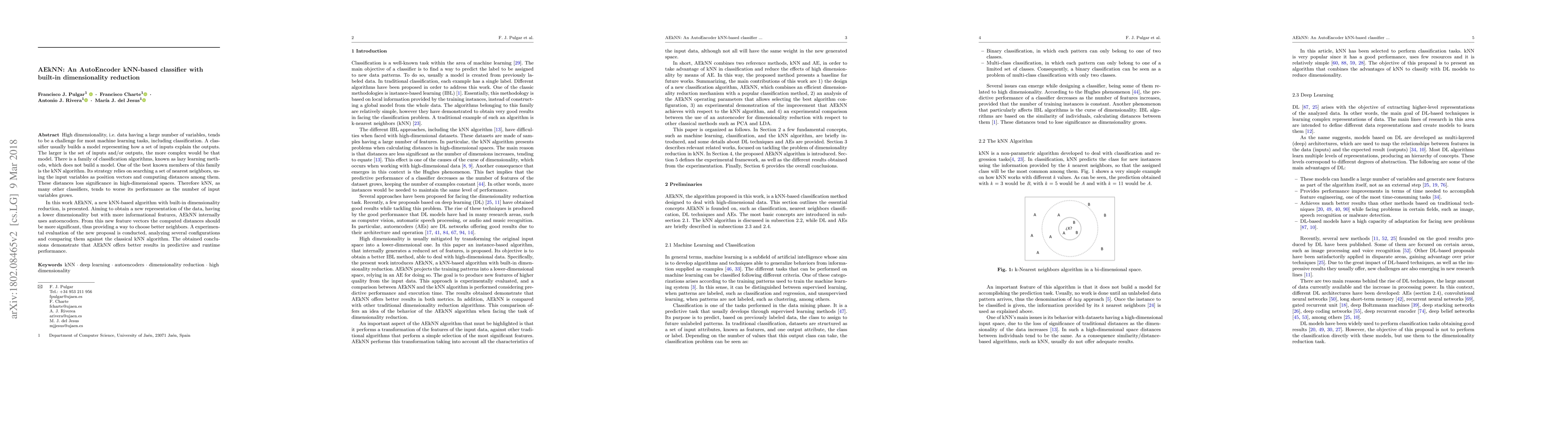 AEkNN introduces a novel kNN-based classifier that incorporates autoencoders for built-in dimensionality reduction, enhancing the significance of computed distances in high-dimensional spaces. Experimental results show AEkNN outperforms classical kNN in both predictive accuracy and runtime efficiency.