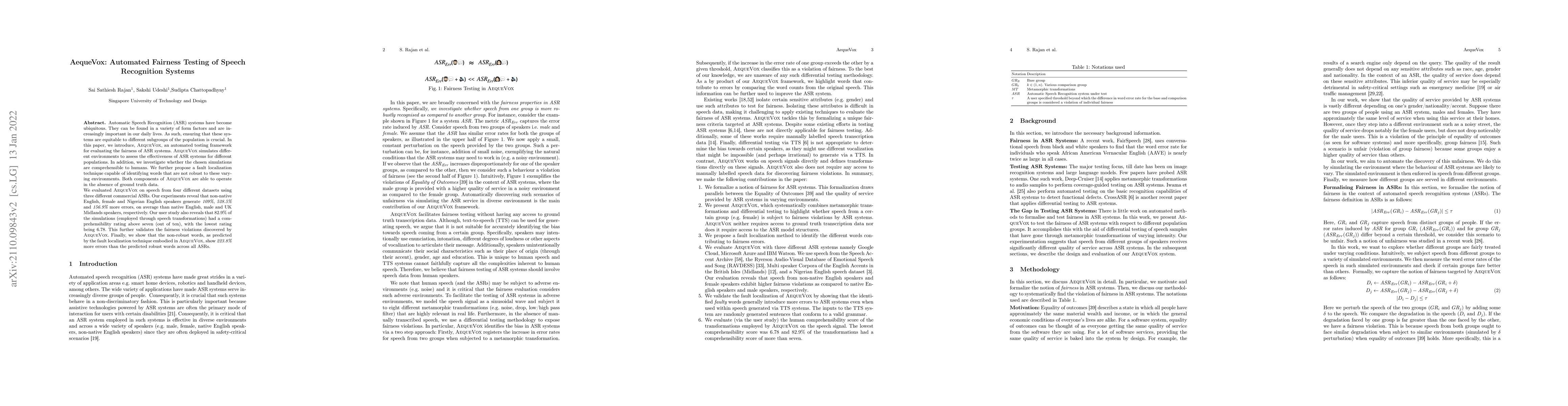 AequeVox introduces an automated fairness testing technique for ASR systems, focusing on discovering fairness violations beyond error rates using metamorphic testing and fault localization.