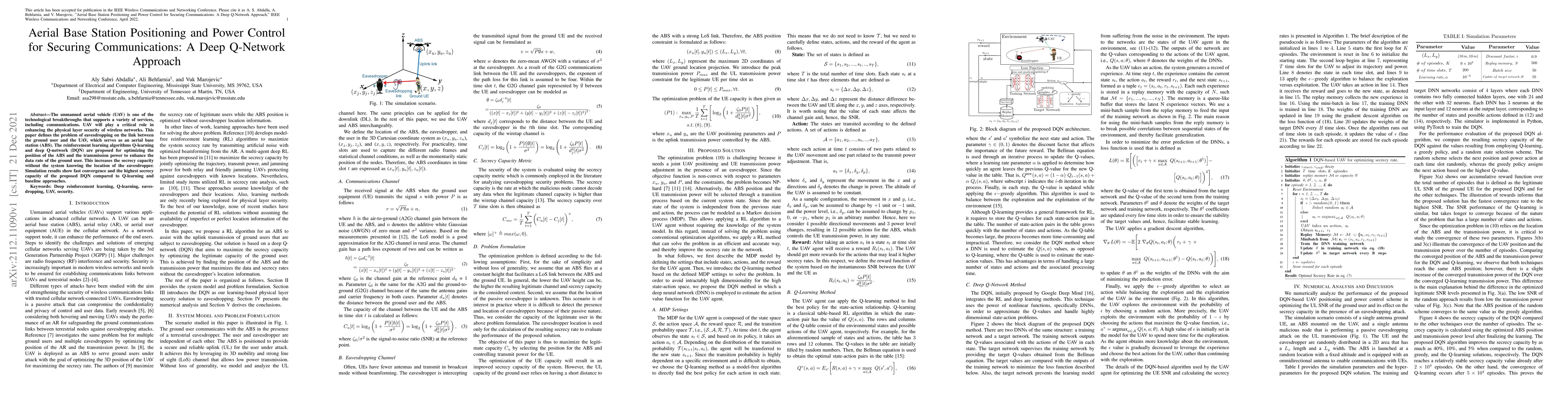 A study proposes using a deep Q-network to optimize UAV position and power for secure wireless communication, achieving higher secrecy capacity than traditional approaches.