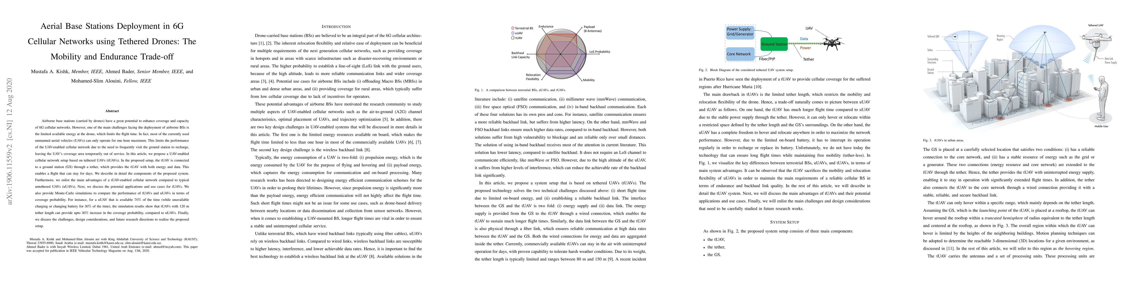 The paper introduces a novel TUAV-enabled cellular network setup, providing a solution to the energy and mobility trade-off faced by untethered UAVs.