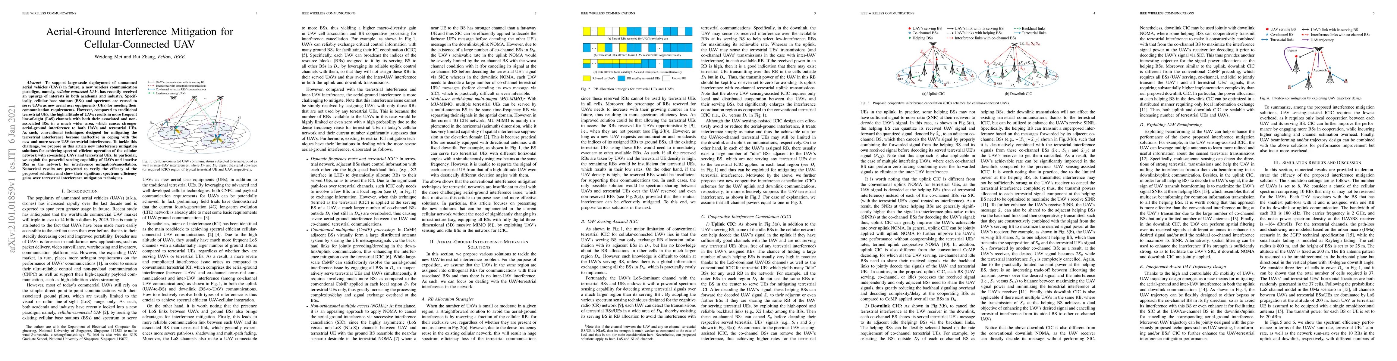 This paper proposes new interference mitigation solutions for cellular-connected UAVs to address the increased aerial-ground interference caused by UAVs' high altitude. It leverages UAVs' sensing capabilities and inactive base stations to effectively mitigate interference, achieving significant spectrum efficiency gains compared to traditional terrestrial interference techniques.