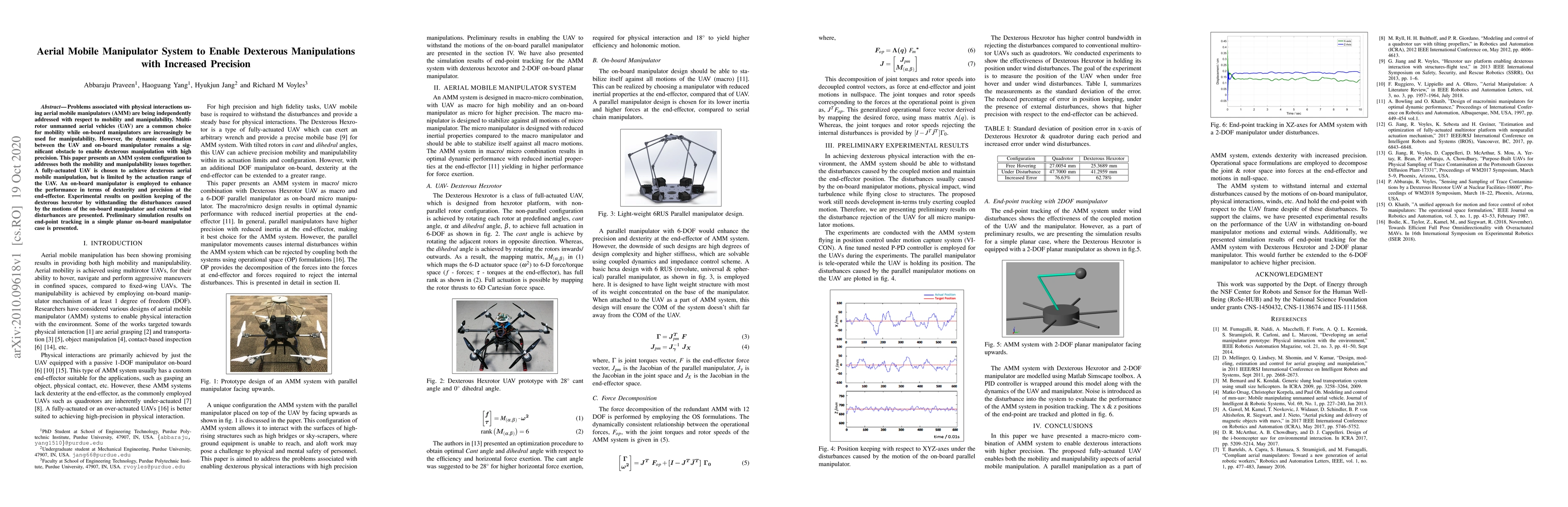 Problems associated with physical interactions using aerial mobile manipulators (AMM) are being independently addressed with respect to mobility and manipulability. Multirotor unmanned aerial vehicles (UAV) are a common choice for mobility while on-board manipulators are increasingly be used for manipulability. However, the dynamic coordination between the UAV and on-board manipulator remains a significant obstacle to enable dexterous manipulation with high precision. This paper presents an AMM system configuration to addresses both the mobility and manipulability issues together. A fully-actuated UAV is chosen to achieve dexterous aerial mobile manipulation, but is limited by the actuation range of the UAV. An on-board manipulator is employed to enhance the performance in terms of dexterity and precision at the end-effector. Experimental results on position keeping of the dexterous hexrotor by withstanding the disturbances caused by the motions of the on-board manipulator and external wind disturbances are presented. Preliminary simulation results on end-point tracking in a simple planar on-board manipulator case is presented.