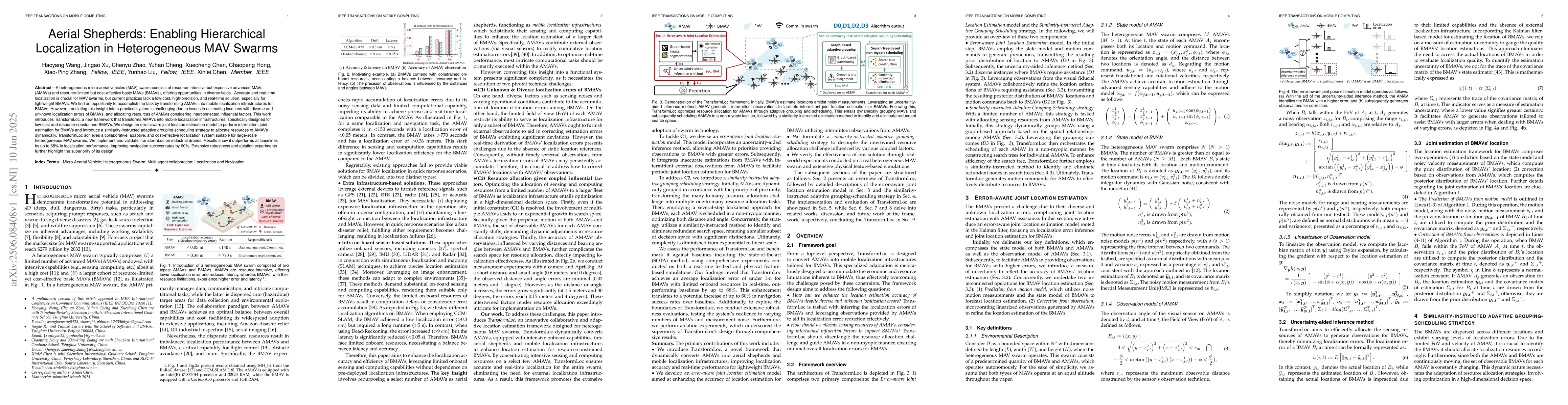 A new framework called TransformLoc enables low-cost and real-time localization for heterogeneous MAV swarms, achieving up to 68% better performance than baseline methods.