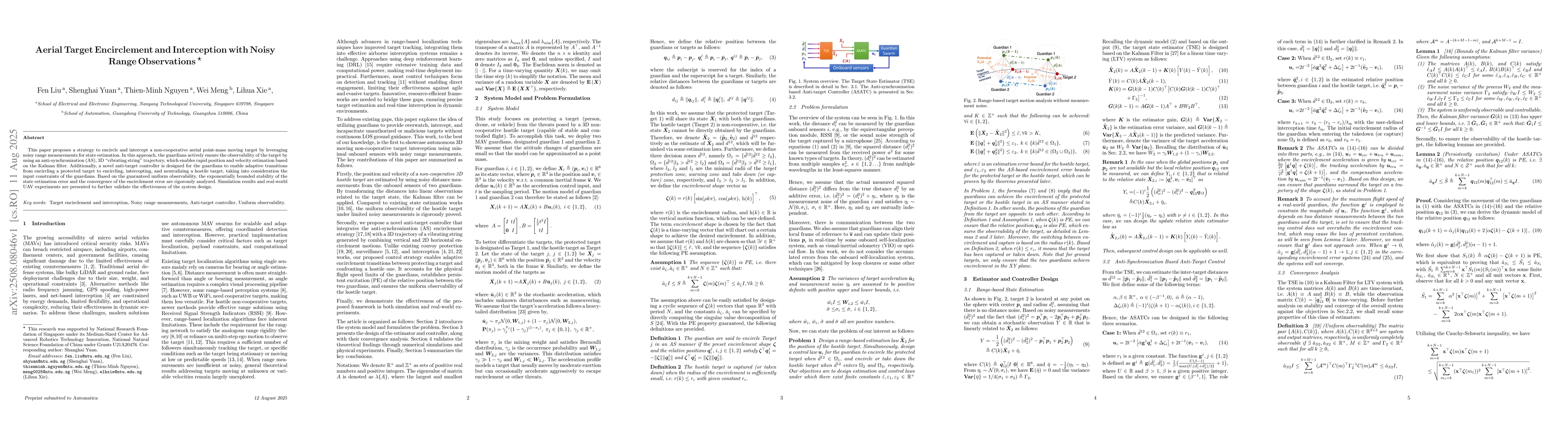 This work introduces an innovative approach for aerial target encirclement and interception, leveraging noisy range observations and AS-based control strategies, which enables autonomous target neutralization by guardians.