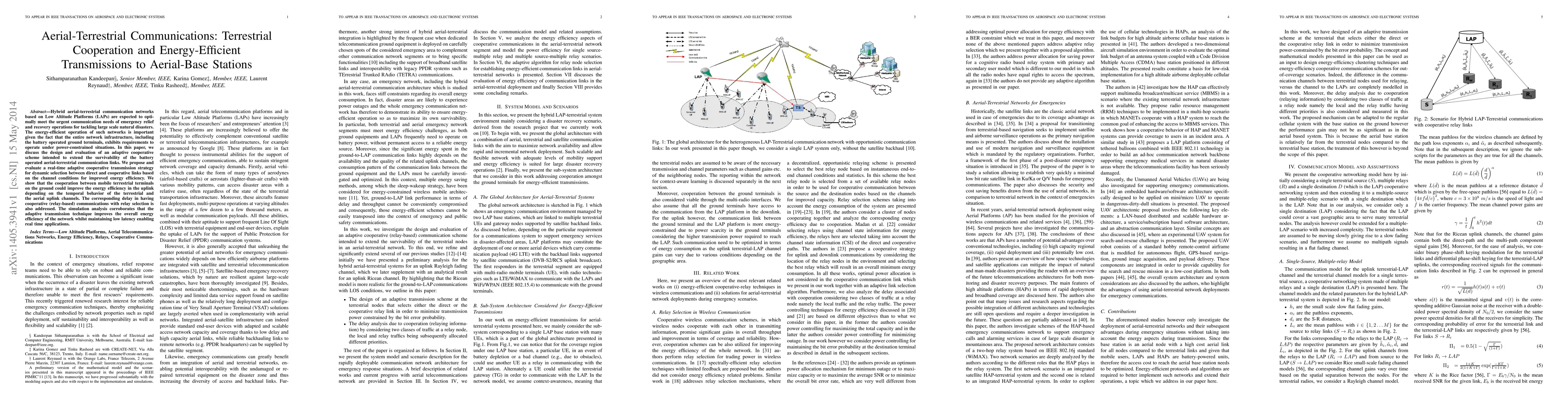 This paper presents an energy-efficient adaptive cooperative transmission strategy for hybrid aerial-terrestrial networks, crucial for power-constrained disaster relief operations. Simulation results show improved energy efficiency and low latency, enabling real-time applications through cooperation between ground terminals and aerial base stations.