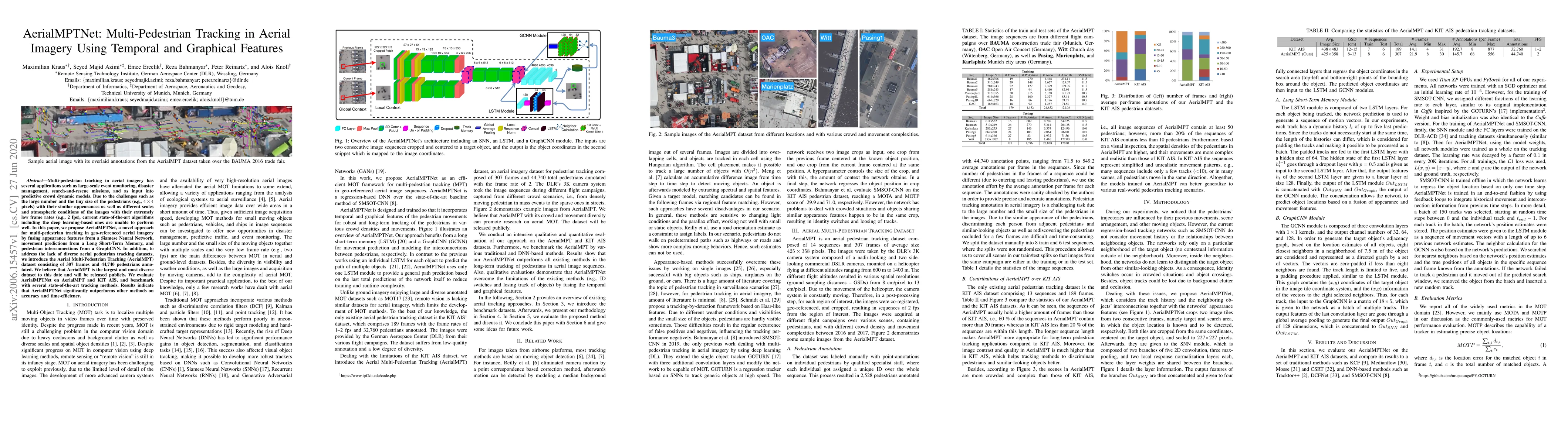 AerialMPTNet proposes a novel approach for multi-pedestrian tracking in aerial imagery by integrating Siamese Neural Networks, LSTMs, and GraphCNNs to handle challenges like small, similar-appearing pedestrians and low frame rates. The paper also introduces the AerialMPT dataset, the largest and most diverse aerial pedestrian tracking dataset to date, and demonstrates AerialMPTNet's superior performance over existing methods.
