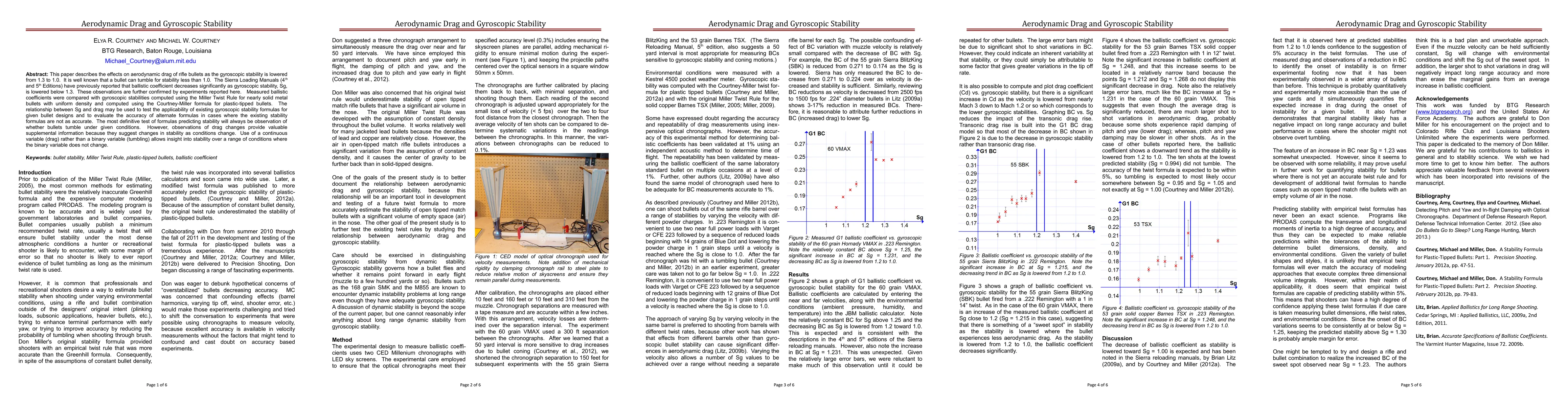 This paper investigates how lowering rifle bullet gyroscopic stability affects aerodynamic drag, with results showing a significant decrease in drag as stability falls below 1.3.
