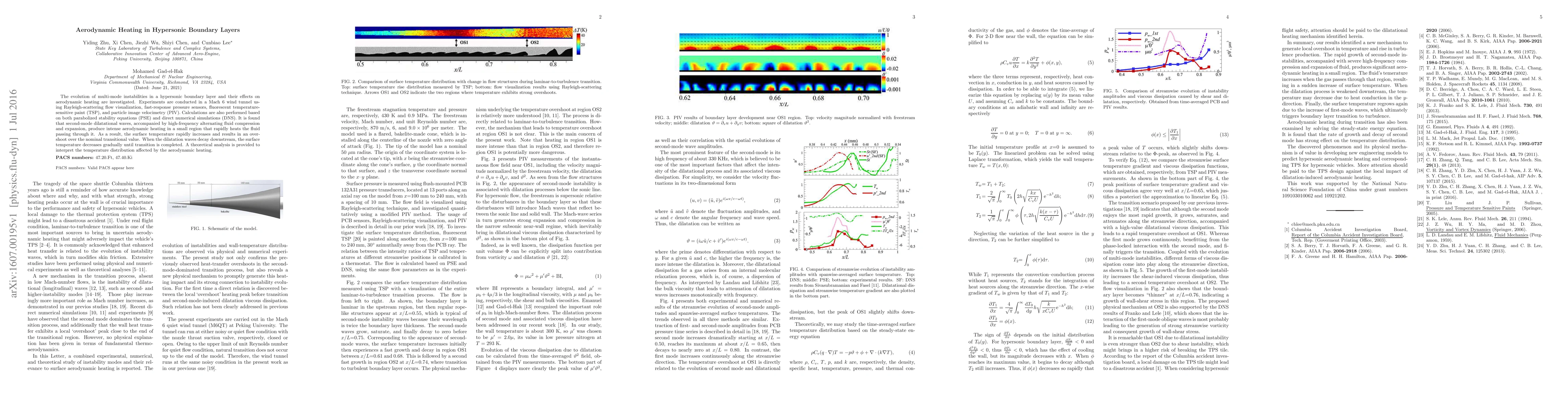 This study investigates the role of second-mode dilatational waves in intensifying aerodynamic heating in hypersonic boundary layers, using experimental and computational methods. The findings show that these waves cause rapid surface temperature increases due to intense fluid compression and expansion, leading to an overshoot in transitional heating values.