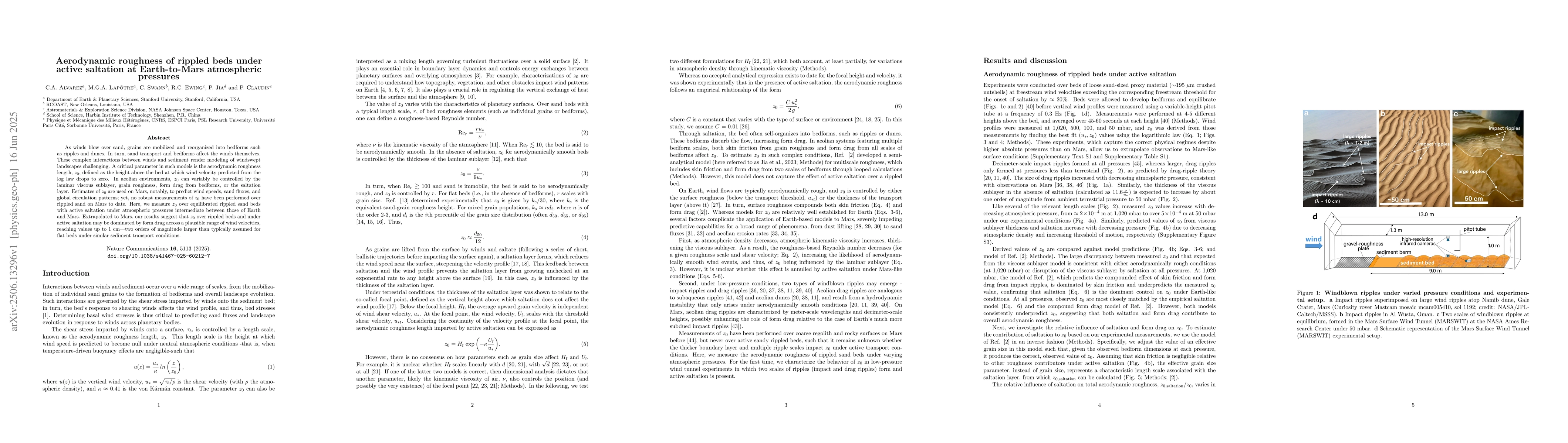 As winds blow over sand, grains are mobilized and reorganized into bedforms such as ripples and dunes. In turn, sand transport and bedforms affect the winds themselves. These complex interactions between winds and sediment render modeling of windswept landscapes challenging. A critical parameter in such models is the aerodynamic roughness length, $z_0$, defined as the height above the bed at which wind velocity predicted from the log law drops to zero. In aeolian environments, $z_0$ can variably be controlled by the laminar viscous sublayer, grain roughness, form drag from bedforms, or the saltation layer. Estimates of $z_0$ are used on Mars, notably, to predict wind speeds, sand fluxes, and global circulation patterns; yet, no robust measurements of $z_0$ have been performed over rippled sand on Mars to date. Here, we measure $z_0$ over equilibrated rippled sand beds with active saltation under atmospheric pressures intermediate between those of Earth and Mars. Extrapolated to Mars, our results suggest that $z_0$ over rippled beds and under active saltation may be dominated by form drag across a plausible range of wind velocities, reaching values up to 1 cm -- two orders of magnitude larger than typically assumed for flat beds under similar sediment transport conditions.