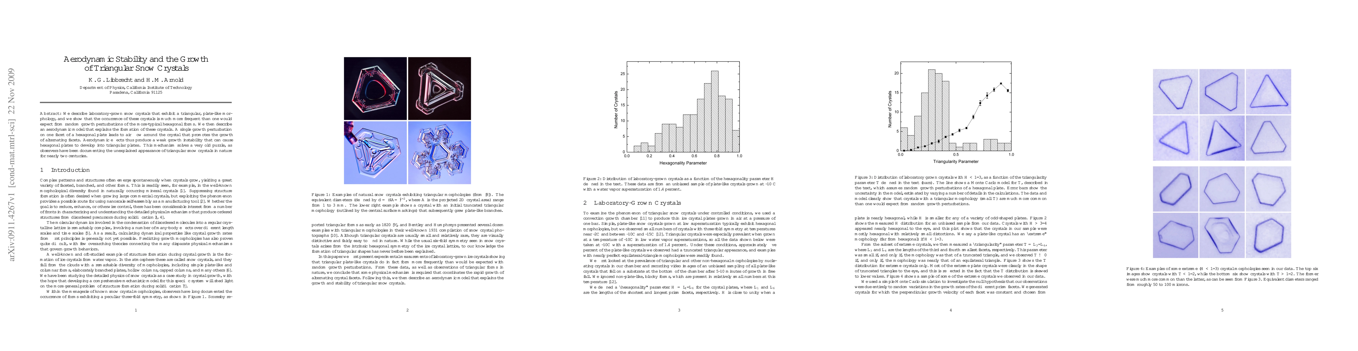 We describe laboratory-grown snow crystals that exhibit a triangular, plate-like morphology, and we show that the occurrence of these crystals is much more frequent than one would expect from random growth perturbations of the more-typical hexagonal forms. We then describe an aerodynamic model that explains the formation of these crystals. A single growth perturbation on one facet of a hexagonal plate leads to air flow around the crystal that promotes the growth of alternating facets. Aerodynamic effects thus produce a weak growth instability that can cause hexagonal plates to develop into triangular plates. This mechanism solves a very old puzzle, as observers have been documenting the unexplained appearance of triangular snow crystals in nature for nearly two centuries.