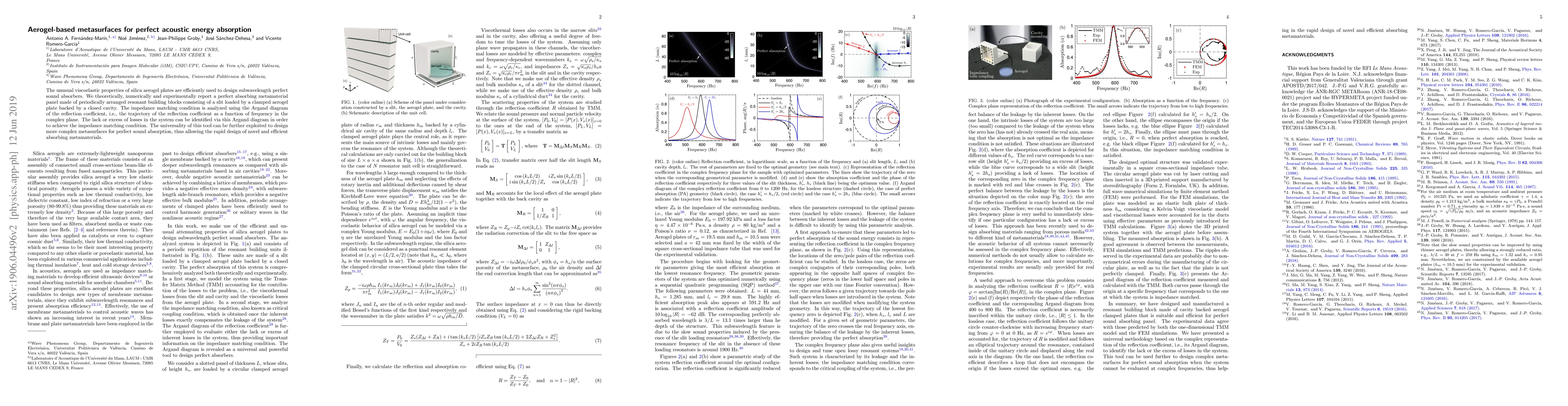 The unusual viscoelastic properties of silica aerogel plates are efficiently used to design subwavelength perfect sound absorbers. We theoretically, numerically and experimentally report a perfect absorbing metamaterial panel made of periodically arranged resonant building blocks consisting of a slit loaded by a clamped aerogel plate backed by a closed cavity. The impedance matching condition is analyzed using the Argand diagram of the reflection coefficient, i.e., the trajectory of the reflection coefficient as a function of frequency in the complex plane. The lack or excess of losses in the system can be identified via this Argand diagram in order to achieve the impedance matching condition. The universality of this tool can be further exploited to design more complex metasurfaces for perfect sound absorption, thus allowing the rapid design of novel and efficient absorbing metamaterials.