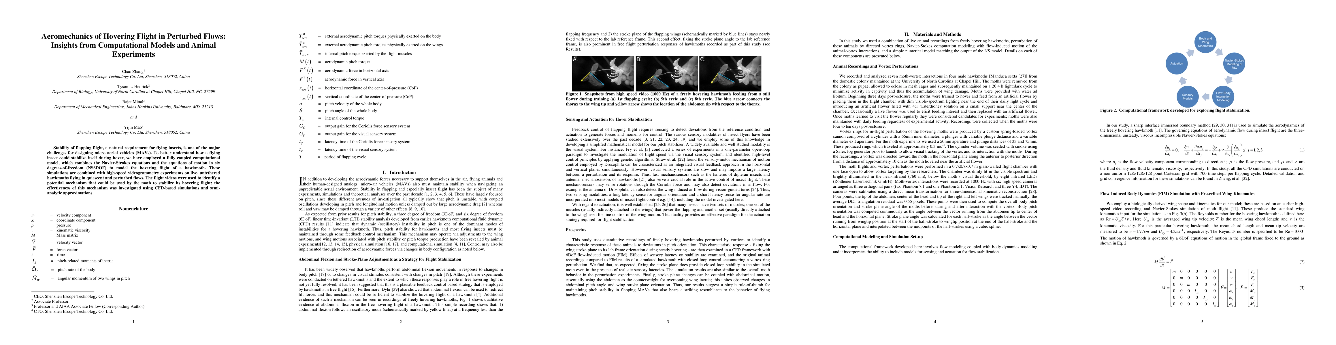 This study combines computational models and animal experiments to explore the stability mechanisms of hovering flight in the hawkmoth, revealing insights into how insects stabilize themselves in perturbed flows, which could inform the design of micro aerial vehicles. High-speed videogrammetry and CFD simulations identify potential stabilization strategies used by the moth.