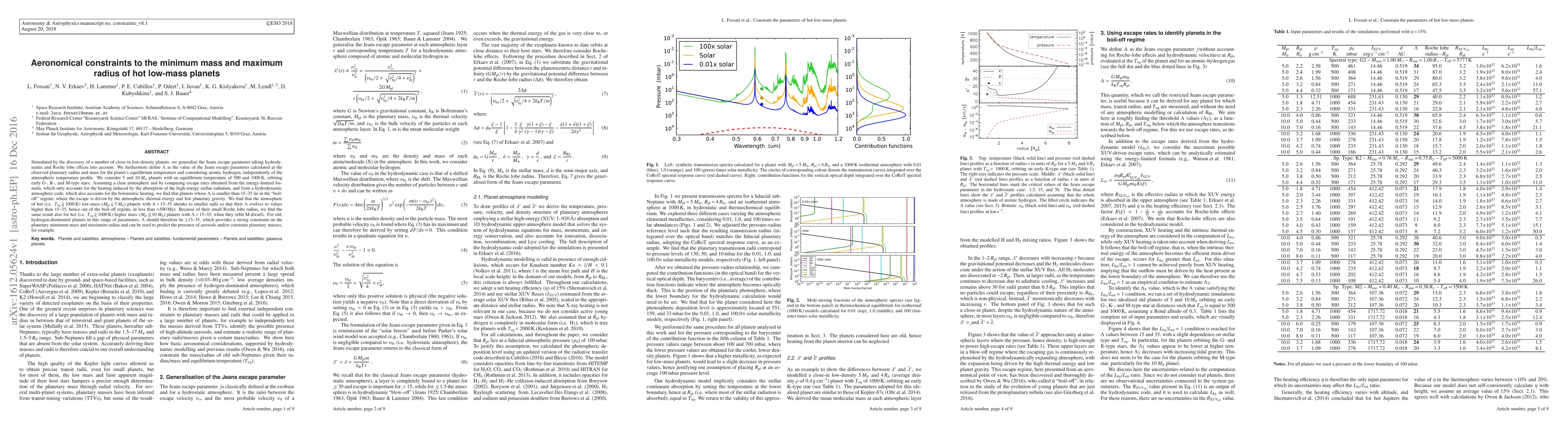 This paper generalizes the Jeans escape parameter to determine the minimum mass and maximum radius of hot, low-mass planets, finding that planets with a $\Lambda$ value below 15-35 will shrink to avoid the "boil-off" regime in less than 500 Myr, thus constraining their mass and radius.
