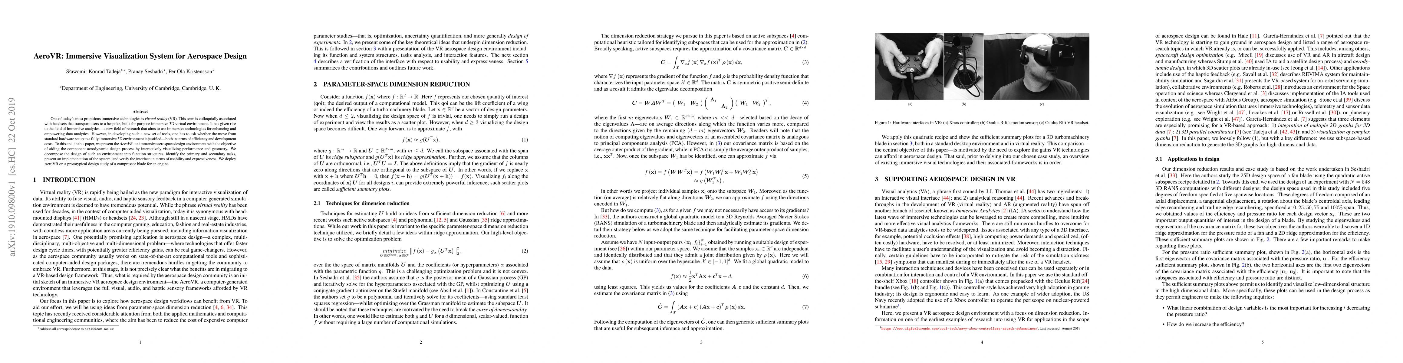 AeroVR is an immersive VR system designed to enhance the aerodynamic design process by providing interactive visualization of performance and geometry. The study evaluates the system's usability and expressiveness, demonstrating its effectiveness through a prototype compressor blade design.