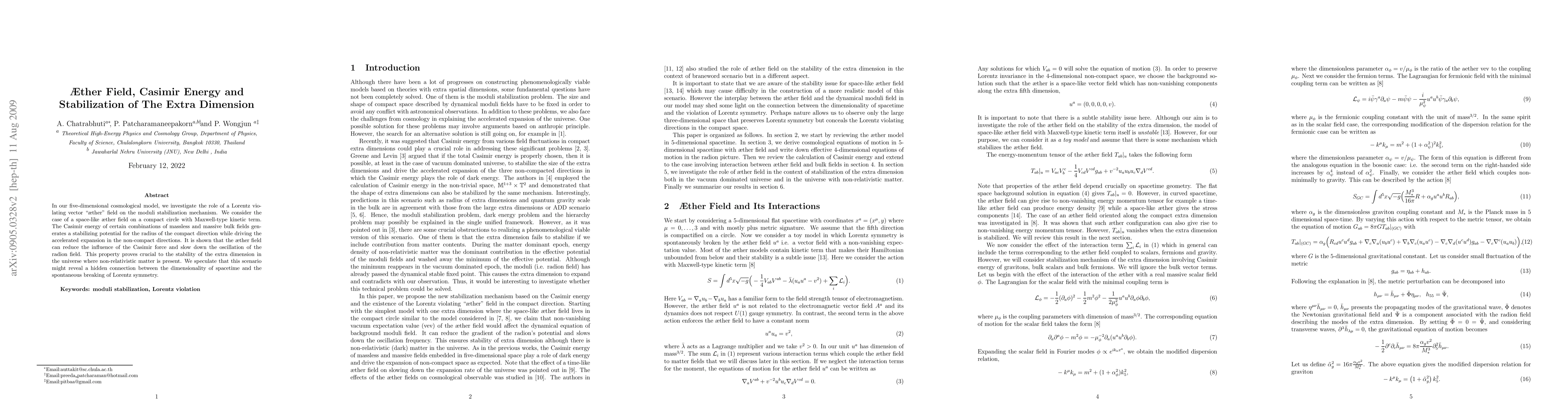 Researchers investigate how a hypothetical {®}ther field can stabilize an extra dimension in the universe, potentially revealing a connection between dimensionality and Lorentz symmetry.