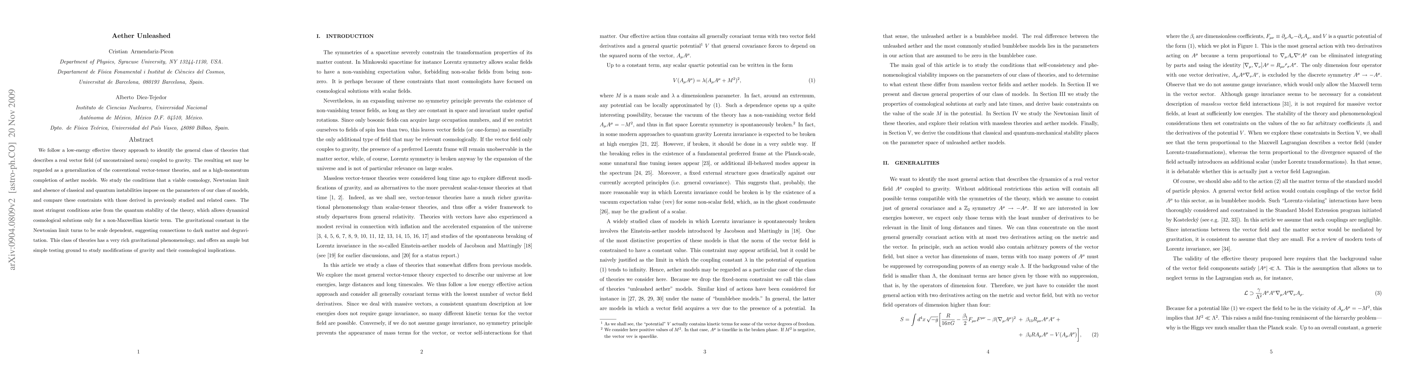 We follow a low-energy effective theory approach to identify the general class of theories that describes a vector field (of unconstrained norm) coupled to gravity. The resulting set may be regarded as a generalization of the conventional vector-tensor theories, and as a high-momentum completion of aether models. We study the conditions that a viable cosmology, Newtonian limit and absence of classical and quantum instabilities impose on the parameters of our class of models, and compare these constraints with those derived in previously studied and related cases. The most stringent conditions arise from the quantum stability of the theory, which allows dynamical cosmological solutions only for a non-Maxwellian kinetic term. The gravitational constant in the Newtonian limit turns to be scale dependent, suggesting connections to dark matter and degravitation. This class of theories has a very rich gravitational phenomenology, and offers an ample but simple testing ground to study modifications of gravity and their cosmological implications.