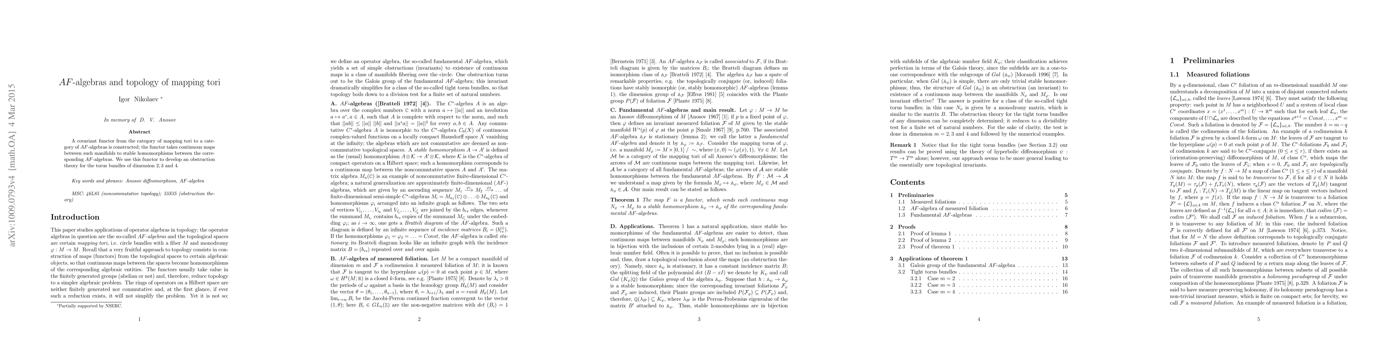 This paper constructs a covariant functor linking mapping tori to AF-algebras, translating continuous maps into stable homomorphisms. The study uses this framework to develop an obstruction theory for torus bundles in dimensions 2, 3, and 4.