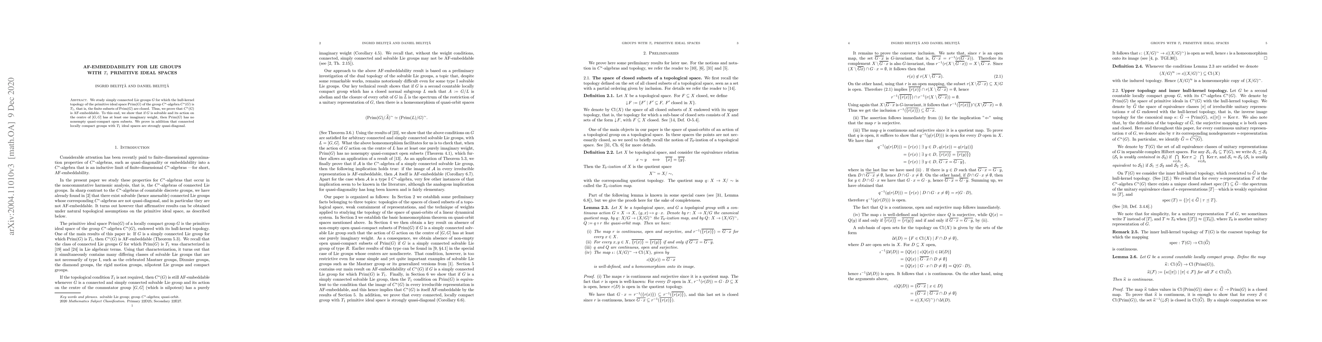 This paper demonstrates that simply connected Lie groups with $T_1$ primitive ideal spaces embed their group $C^*$-algebras into AF algebras. It also proves that solvable Lie groups with certain actions on their centres have non-quasi-compact open subsets in their primitive ideal spaces, and that connected locally compact groups with $T_1$ ideal spaces are strongly quasi-diagonal.