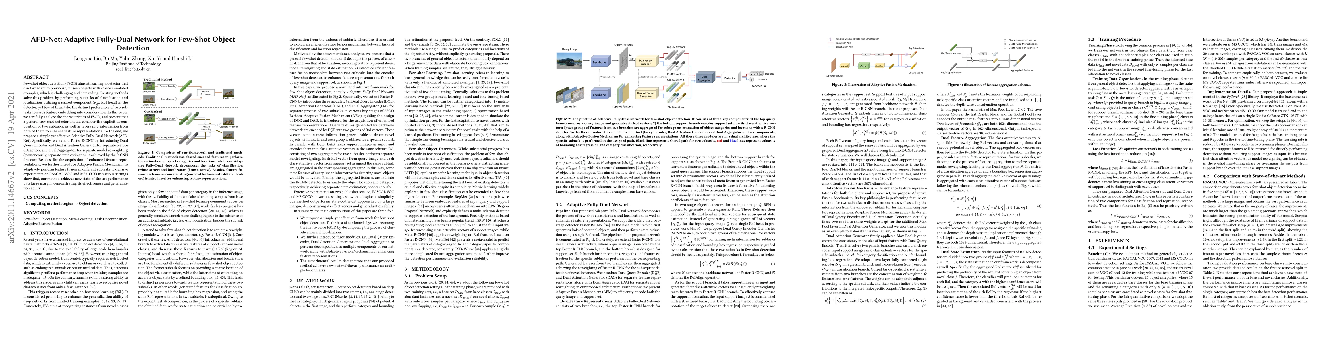 This paper introduces the Adaptive Fully-Dual Network (AFD-Net) for few-shot object detection, aiming to enhance the adaptation of detectors to new objects with limited annotated examples. The proposed method decomposes classification and localization tasks separately, leveraging distinct feature embeddings and adaptive fusion mechanisms to achieve superior performance, as demonstrated by state-of-the-art results on PASCAL VOC and MS COCO datasets.