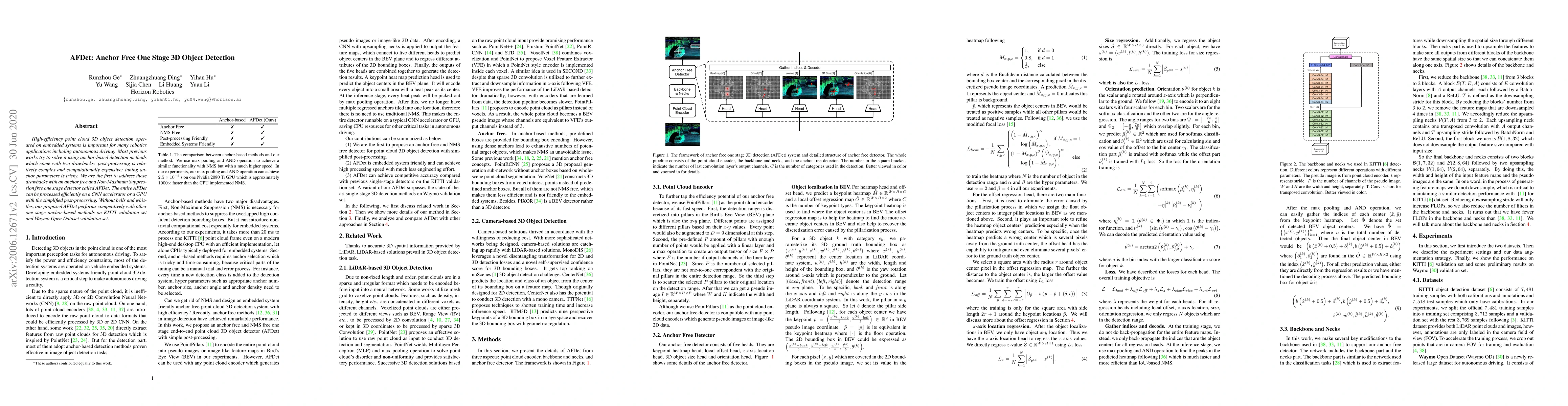 AFDet is an innovative anchor-free, one-stage 3D object detection method designed for efficient processing on embedded systems. It simplifies post-processing and eliminates the need for tuning anchor parameters, achieving competitive performance on standard datasets.