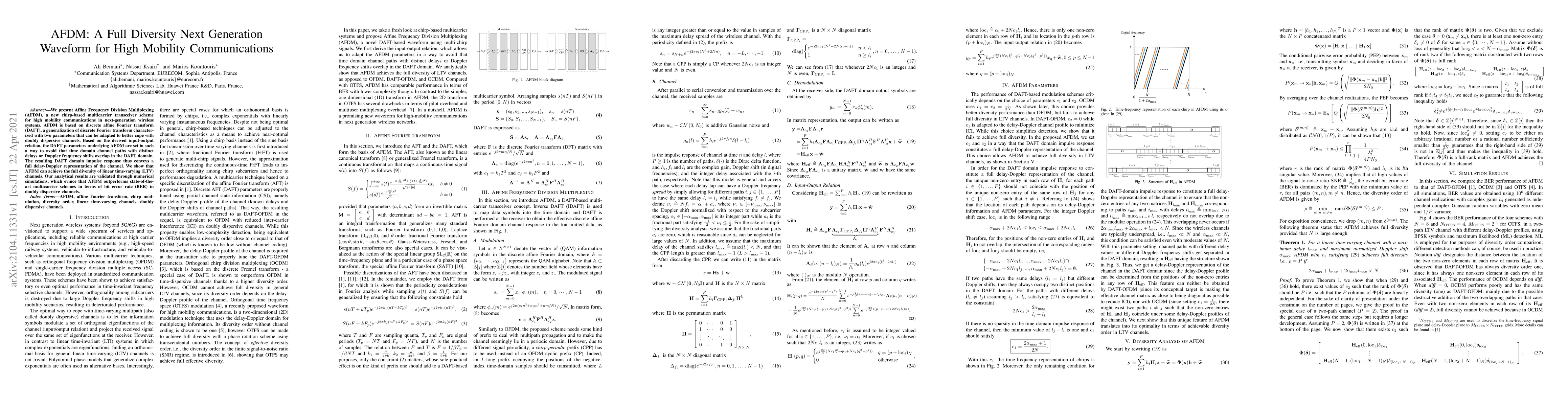 Researchers introduce AFDM, a new multicarrier scheme for high mobility communications that achieves full diversity in doubly dispersive channels, outperforming existing schemes in bit error rate tests.