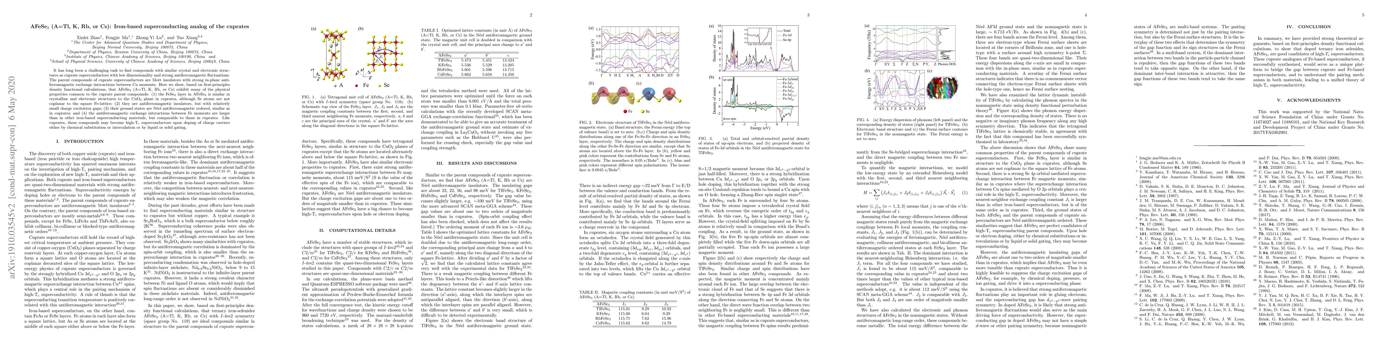 It has long been a challenging task to find compounds with similar crystal and electronic structures as cuprate superconductors with low dimensionality and strong antiferromagnetic fluctuations. The parent compounds of cuprate superconductors are Mott insulators with strong in-plane antiferromagnetic exchange interactions between Cu moments. Here we show, based on first-principles density functional calculations, that AFeSe2 (A=Tl, K, Rb, or Cs) exhibit many of the physical properties common to the cuprate parent compounds: (1) the FeSe2 layer in AFeSe2 is similar in crystalline and electronic structures to the CuO2 plane in cuprates, although Se atoms are not coplanar to the square Fe-lattice; (2) they are antiferromagnetic insulators, but with relatively small charge excitation gaps; (3) their ground states are Neel antiferromagnetic ordered, similar as in cuprates; and (4) the antiferromagnetic exchange interactions between Fe moments are larger than in other iron-based superconducting materials, but comparable to those in cuprates. Like cuprates, these compounds may become high-Tc superconductors upon doping of charge carriers either by chemical substitution or intercalation or by liquid or solid gating.