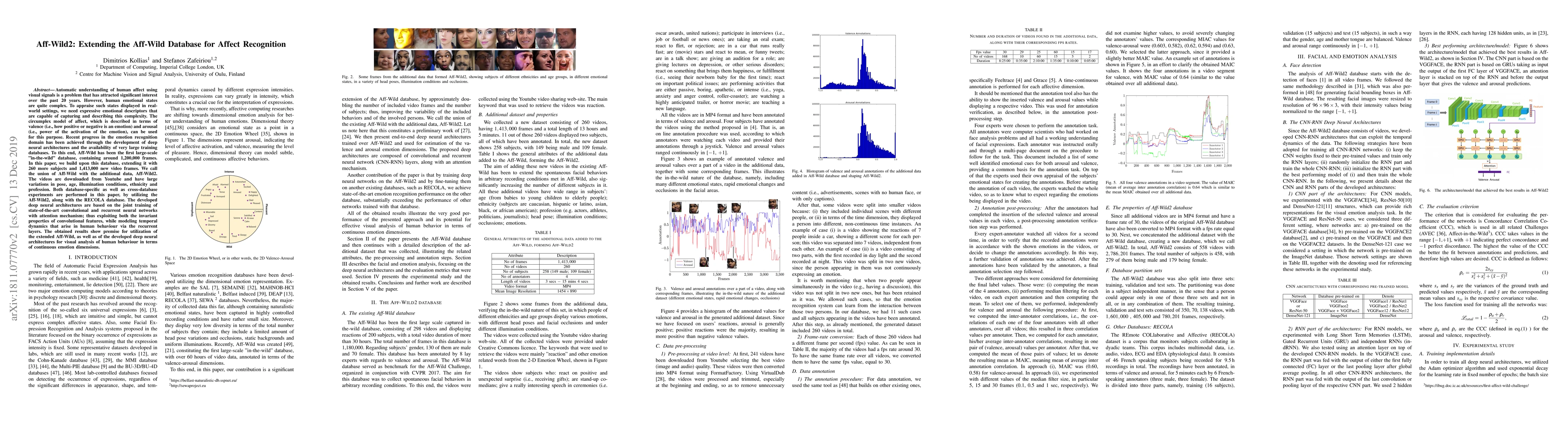 Aff-Wild2 extends the original Aff-Wild database with additional 260 subjects and 1,413,000 video frames, enhancing the dataset's diversity and complexity. The new data, combined with deep neural architectures, show promise for improved emotion recognition in real-world settings.