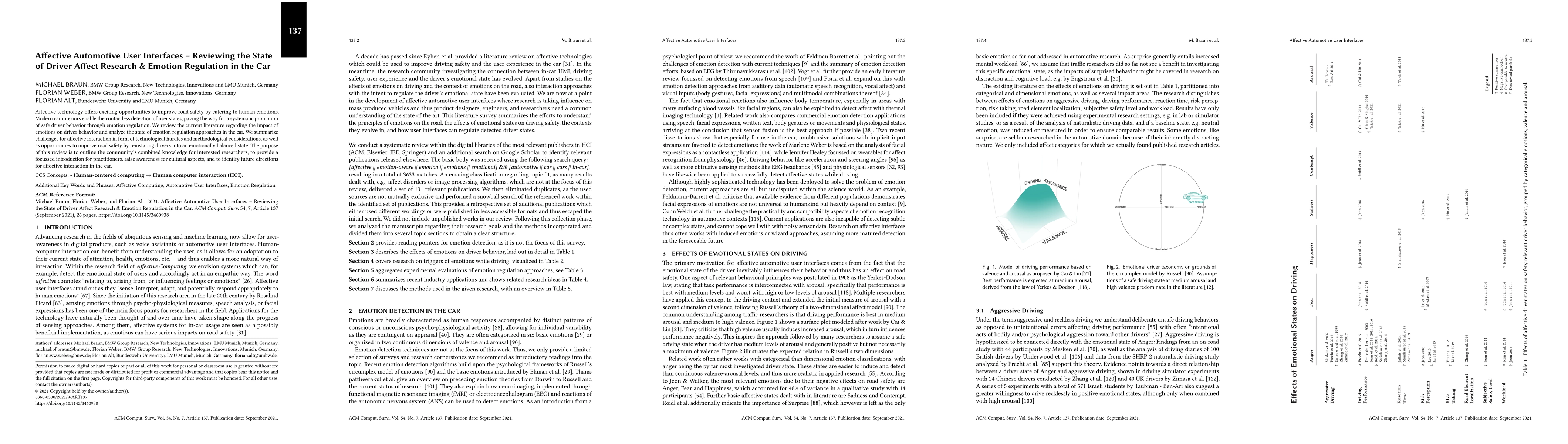 This paper reviews current literature on emotion regulation in automotive interfaces, highlighting the potential of affective technology to enhance road safety by detecting and managing driver emotions. It identifies challenges and opportunities for future research in this area, aiming to guide both researchers and practitioners in developing effective emotional interaction systems.