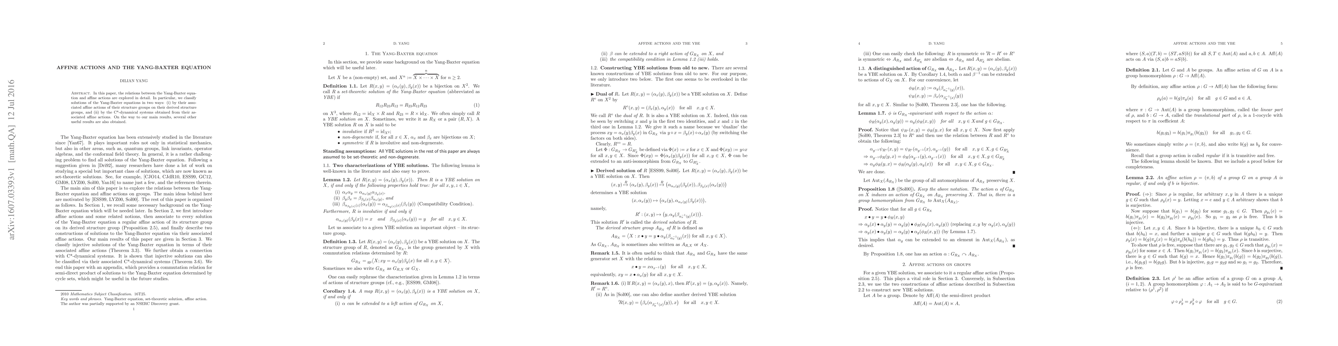 The paper explores the relations between the Yang-Baxter equation and affine actions, classifying solutions based on their associated affine actions and C*-dynamical systems.
