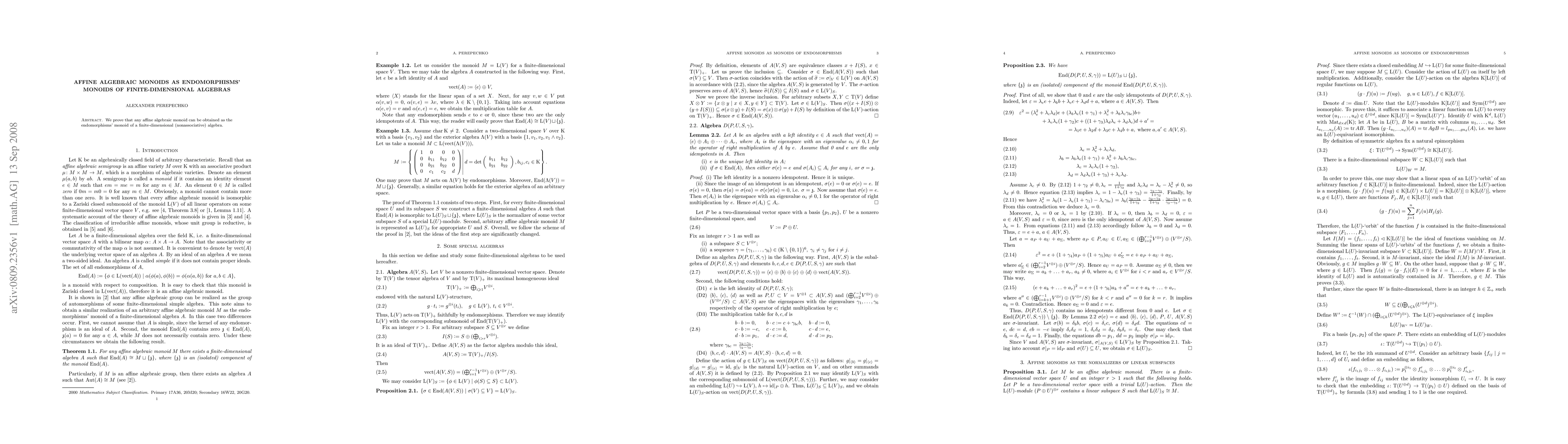 In this note we prove that any affine algebraic monoid can be obtained as the endomorphisms' monoid of a finite-dimensional (nonassociative) algebra.