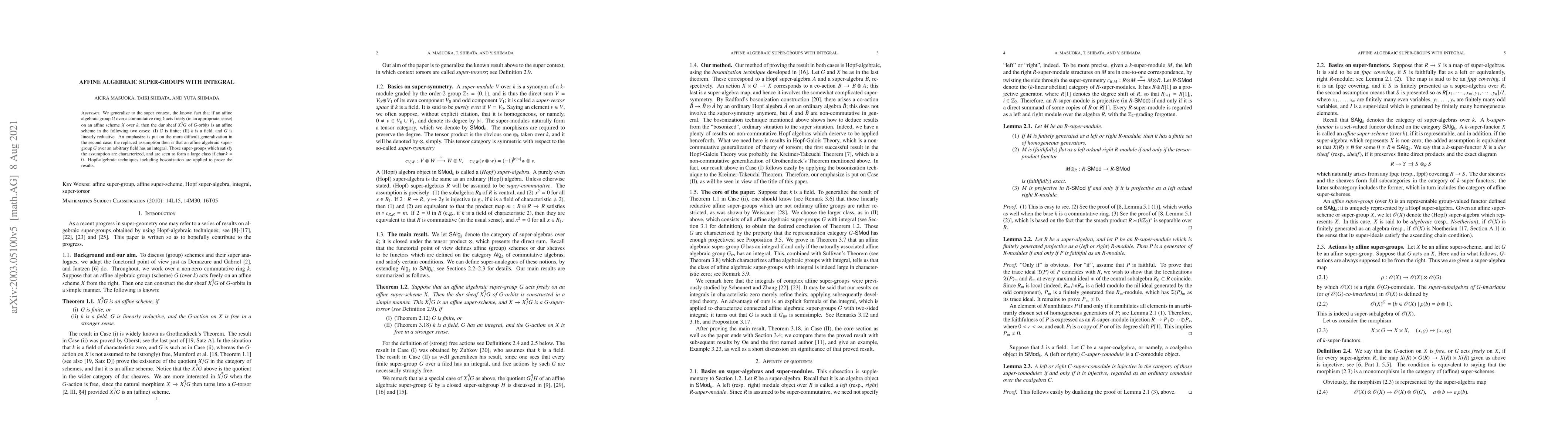 This paper generalizes the theory of affine algebraic groups to affine algebraic super-groups, showing that if a super-group $G$ acts freely on an affine scheme $X$, the quotient $X\tilde{\tilde{/}}G$ is an affine scheme under certain conditions. The focus is on the challenging case where $G$ is linearly reductive over a field, characterized by the existence of an integral.