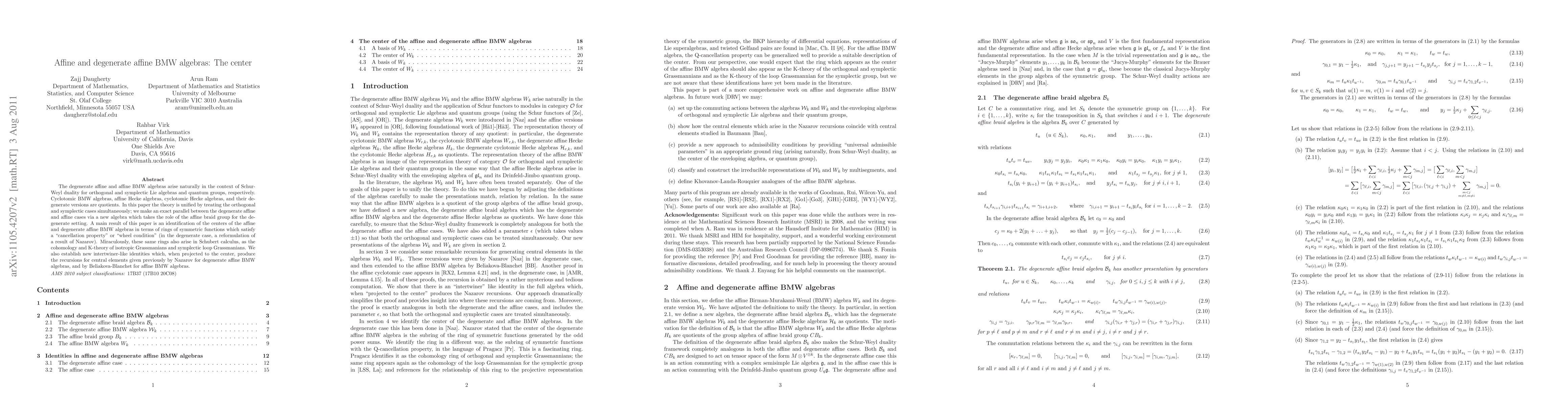 This paper unifies the theory of degenerate and affine BMW algebras, establishing an exact parallel between the two cases via a new degenerate affine braid group algebra. It identifies the centers of these algebras in terms of rings of symmetric functions, revealing connections to Schubert calculus and providing new identities for central elements.
