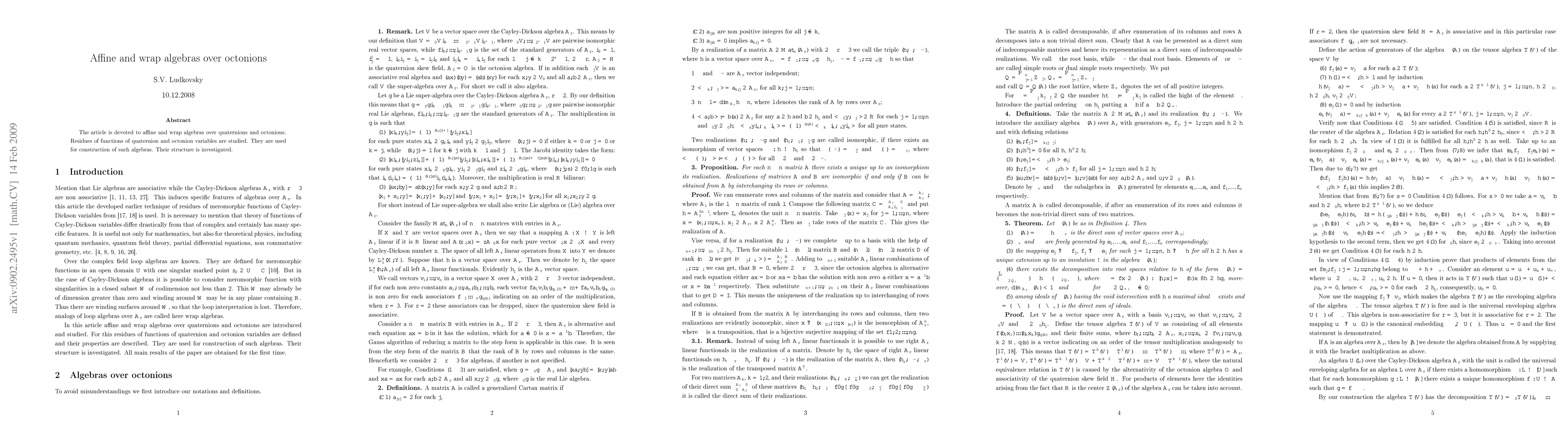 This paper explores the construction and structural analysis of affine and wrap algebras based on residues of functions with quaternion and octonion variables, focusing on the unique properties and applications of these algebras.