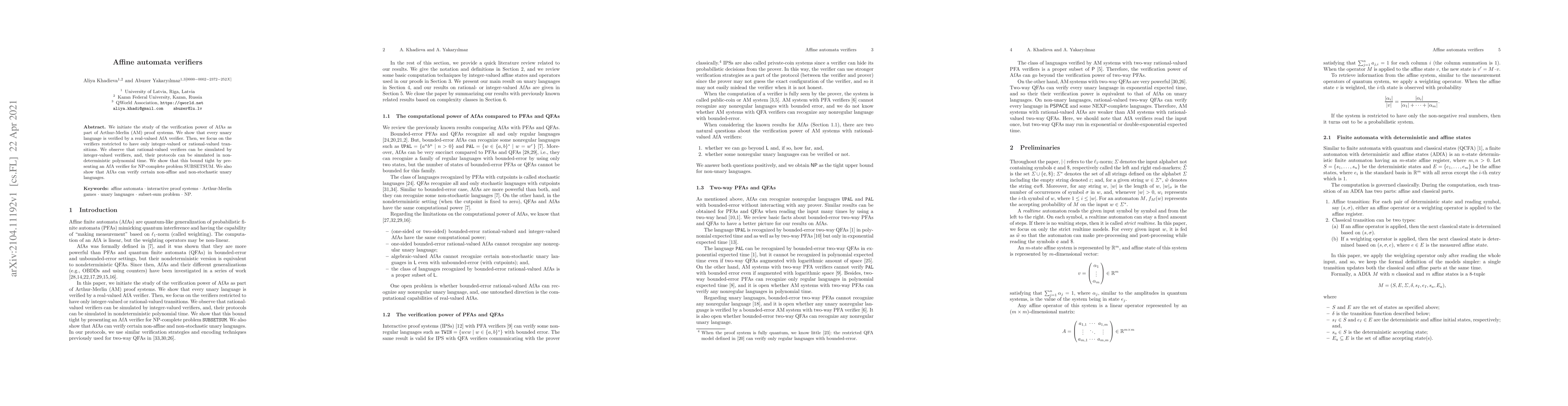 This paper explores the power of affine automata verifiers in Arthur-Merlin proof systems, showing they can verify unary languages and proving certain non-affine and non-stochastic languages can also be verified.