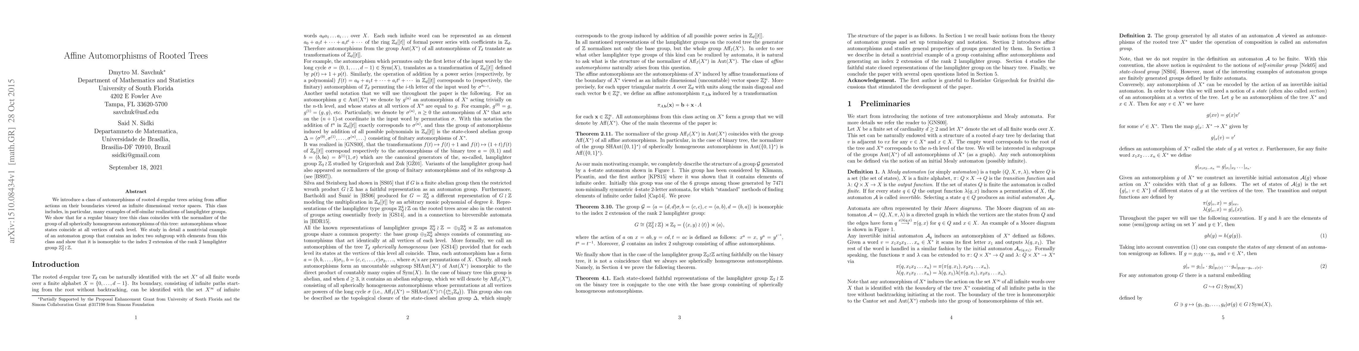 This paper explores affine automorphisms of rooted $d$-regular trees, particularly focusing on their self-similar realizations in lamplighter groups. It demonstrates that for a regular binary tree, these automorphisms coincide with the normalizer of spherically homogeneous automorphisms, and it details an automaton group isomorphic to the index 2 extension of the rank 2 lamplighter group.