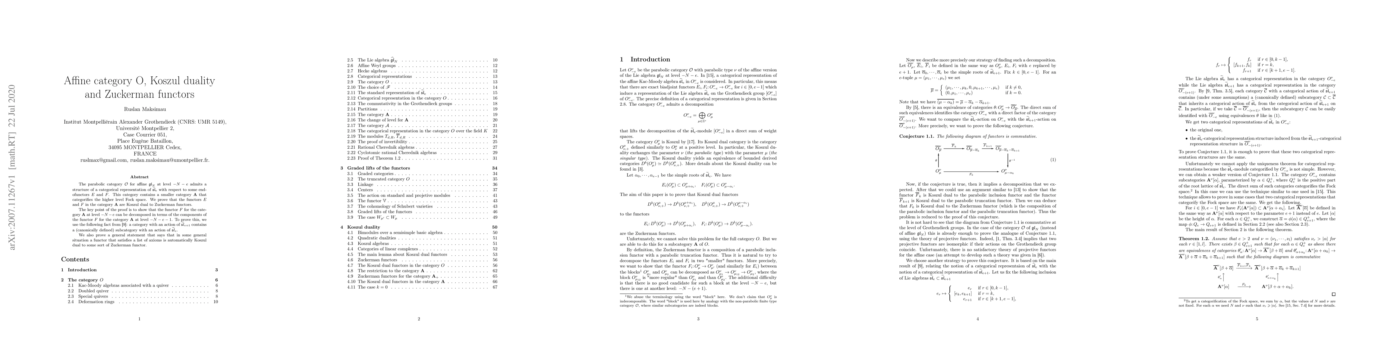 This paper explores the structure of parabolic category $\mathcal{O}$ for affine $\mathfrak{gl}_N$ at level $-N-e$, establishing a categorical representation of $\widetilde{\mathfrak{sl}}_e$ through endofunctors $E$ and $F$. The authors prove that these functors are Koszul dual to Zuckerman functors, highlighting the decomposition of the functor $F$ and proving a general theorem about the Koszul duality under certain conditions.