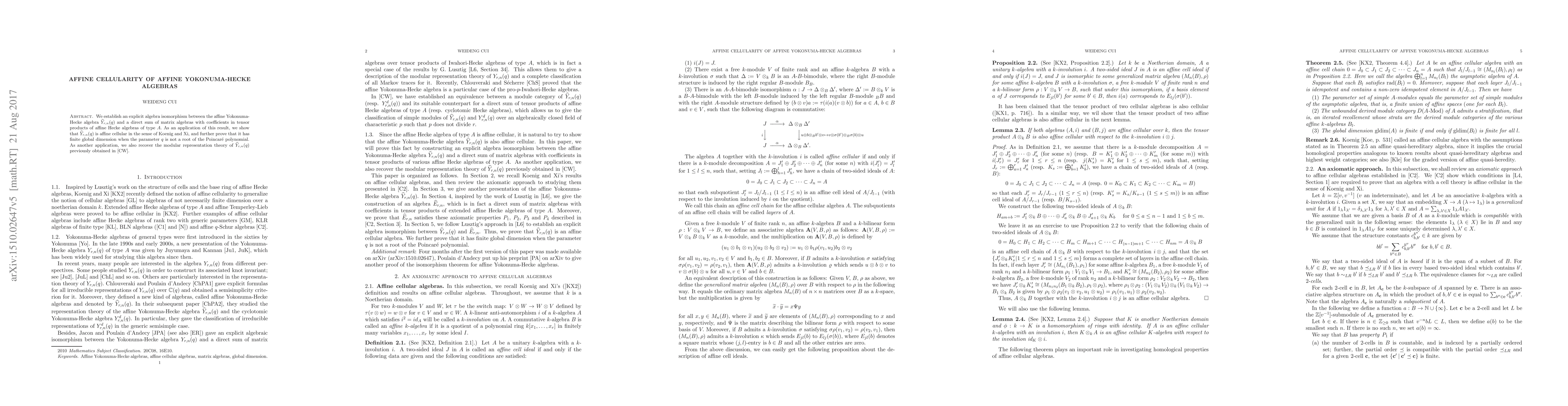 The paper establishes an isomorphism between the affine Yokonuma-Hecke algebra $\widehat{Y}_{r,n}(q)$ and a direct sum of matrix algebras, proving its affine cellularity and finite global dimension under certain conditions. It also revisits the modular representation theory of $\widehat{Y}_{r,n}(q)$.