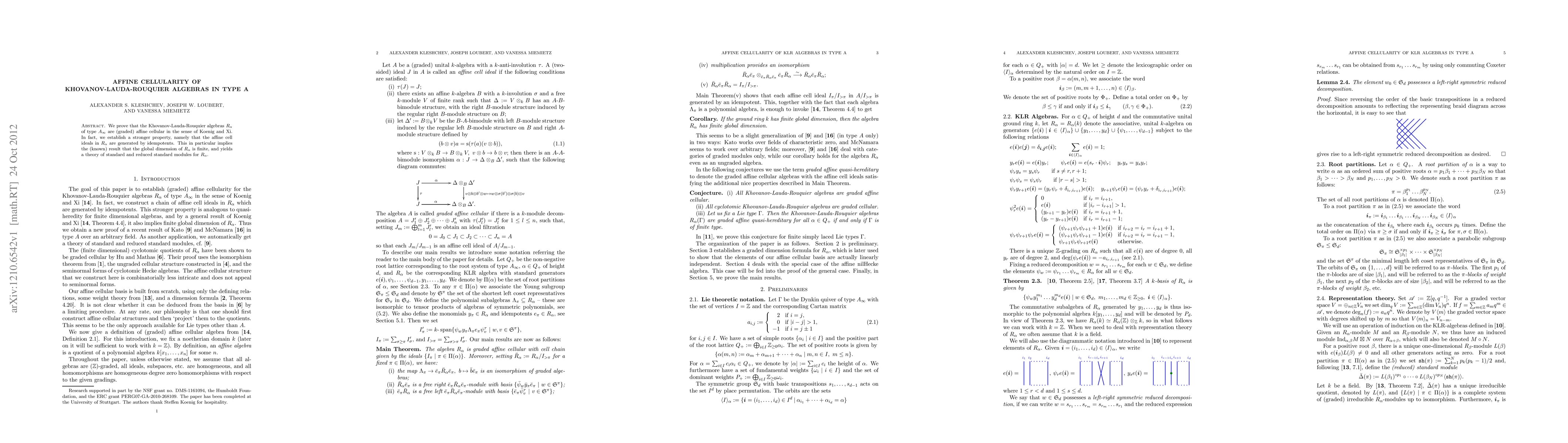 This paper demonstrates that Khovanov-Lauda-Rouquier algebras $R_\al$ of type $A_\infty$ are graded affine cellular, with affine cell ideals generated by idempotents, leading to finite global dimension and a theory of standard and reduced standard modules.
