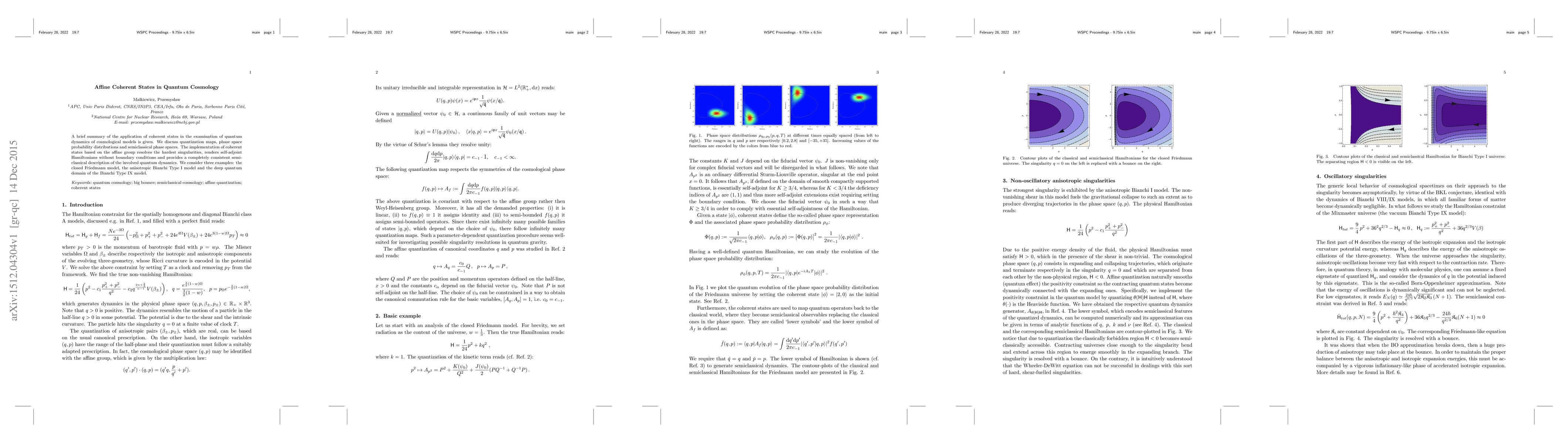 A brief summary of the application of coherent states in the examination of quantum dynamics of cosmological models is given. We discuss quantization maps, phase space probability distributions and semiclassical phase spaces. The implementation of coherent states based on the affine group resolves the hardest singularities, renders self-adjoint Hamiltonians without boundary conditions and provides a completely consistent semi-classical description of the involved quantum dynamics. We consider three examples: the closed Friedmann model, the anisotropic Bianchi Type I model and the deep quantum domain of the Bianchi Type IX model.