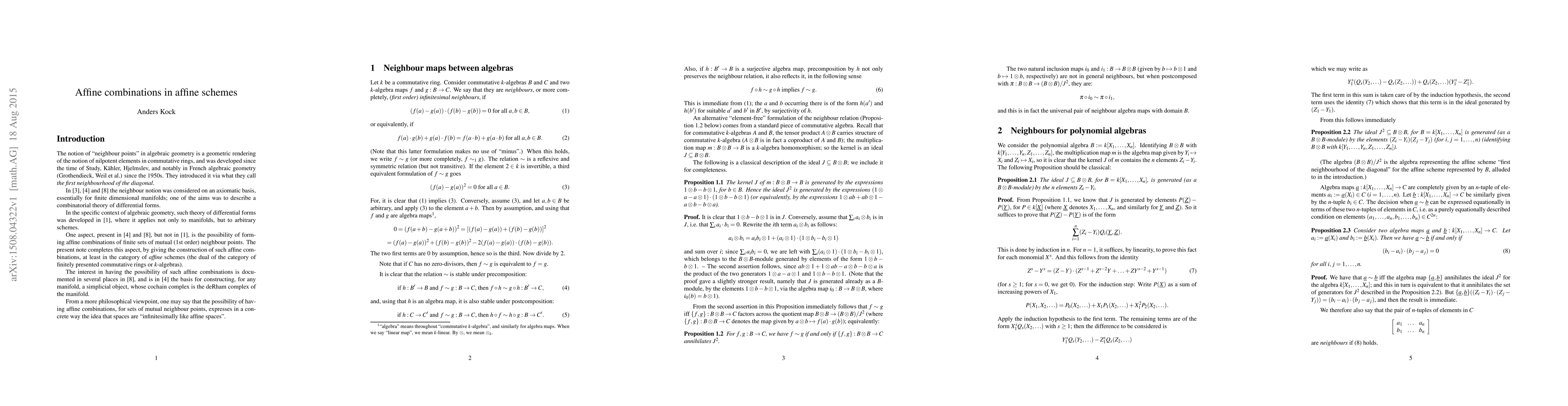 Researchers prove that finite sets of neighbor points in affine schemes can be combined using affine combinations, which preserve their value under any map.