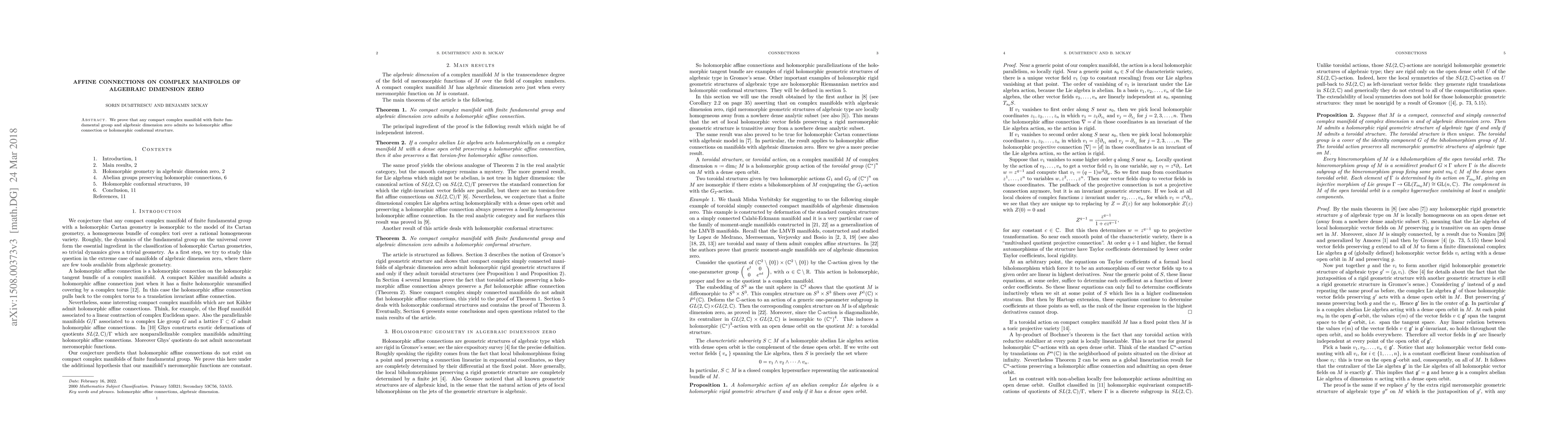 We prove that any compact complex manifold with finite fundamental group and algebraic dimension zero admits no holomorphic affine connection.